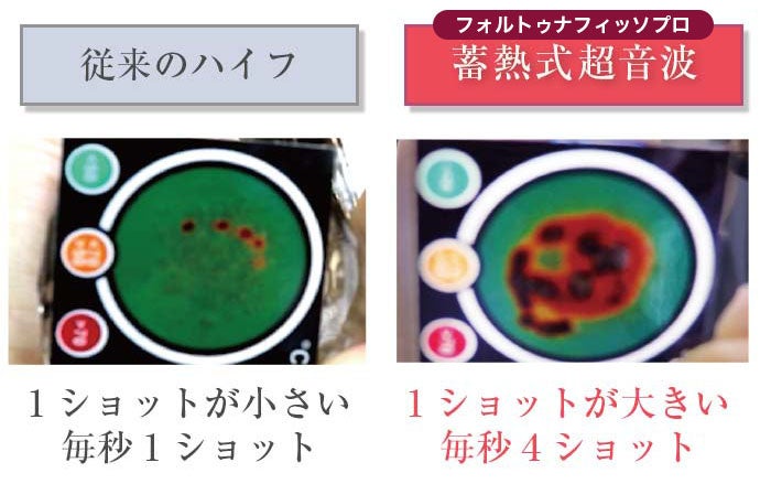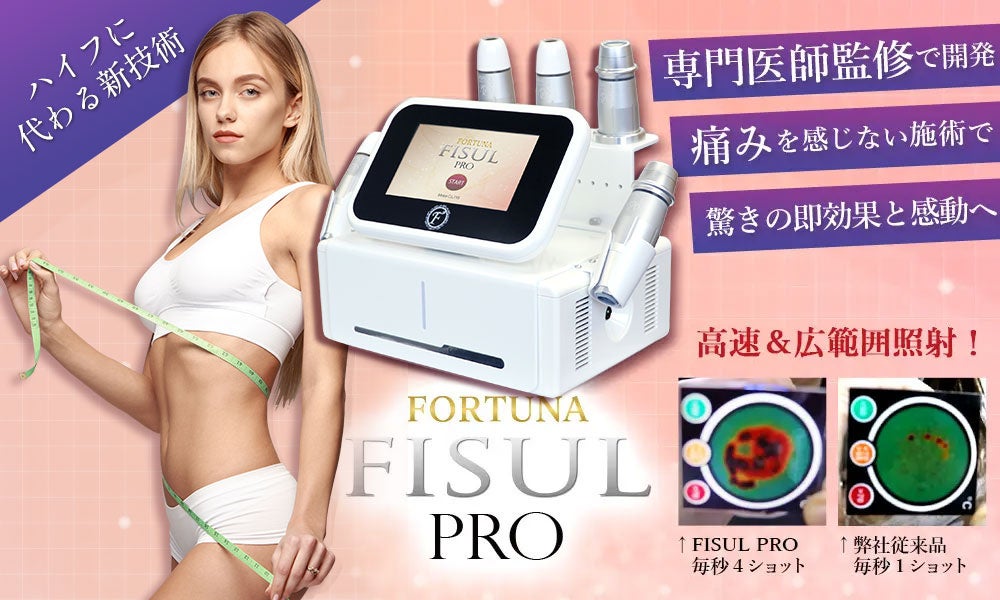 今話題のハイフに代わる新技術「蓄熱式超音波」を搭載した「フォルトゥナフィッソプロ」も実際に効果がお試しできるので、エステサロンでのリフトアップメニュー導入をお考えの方はぜひこの機会にご活用ください。