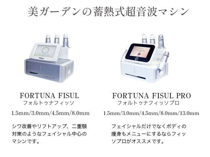 美ガーデンは元々国内の厳格な体制でマシンを作っているので過去に作ったハイフマシンも安全ではありましたが、蓄熱式超音波のFORTUNA FISULとFORTUNA FISUL PROはセルフエステでも多数導入されるほど誰でも使いやすいマシンに。ハンドピースとカートリッジが一体化になり軽量なのもポイントが高いですね。自信を持っておすすめします。