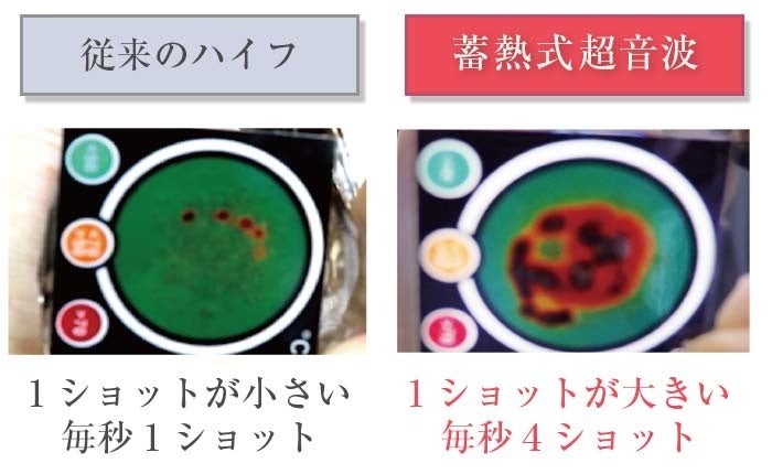 また、毎秒4ショットのハイスピード照射によって痛みやリスクが無いだけでなく、時短化や即効果など、エステサロンや消費者にとって嬉しい性能も蓄熱式超音波には持ち合わせています。