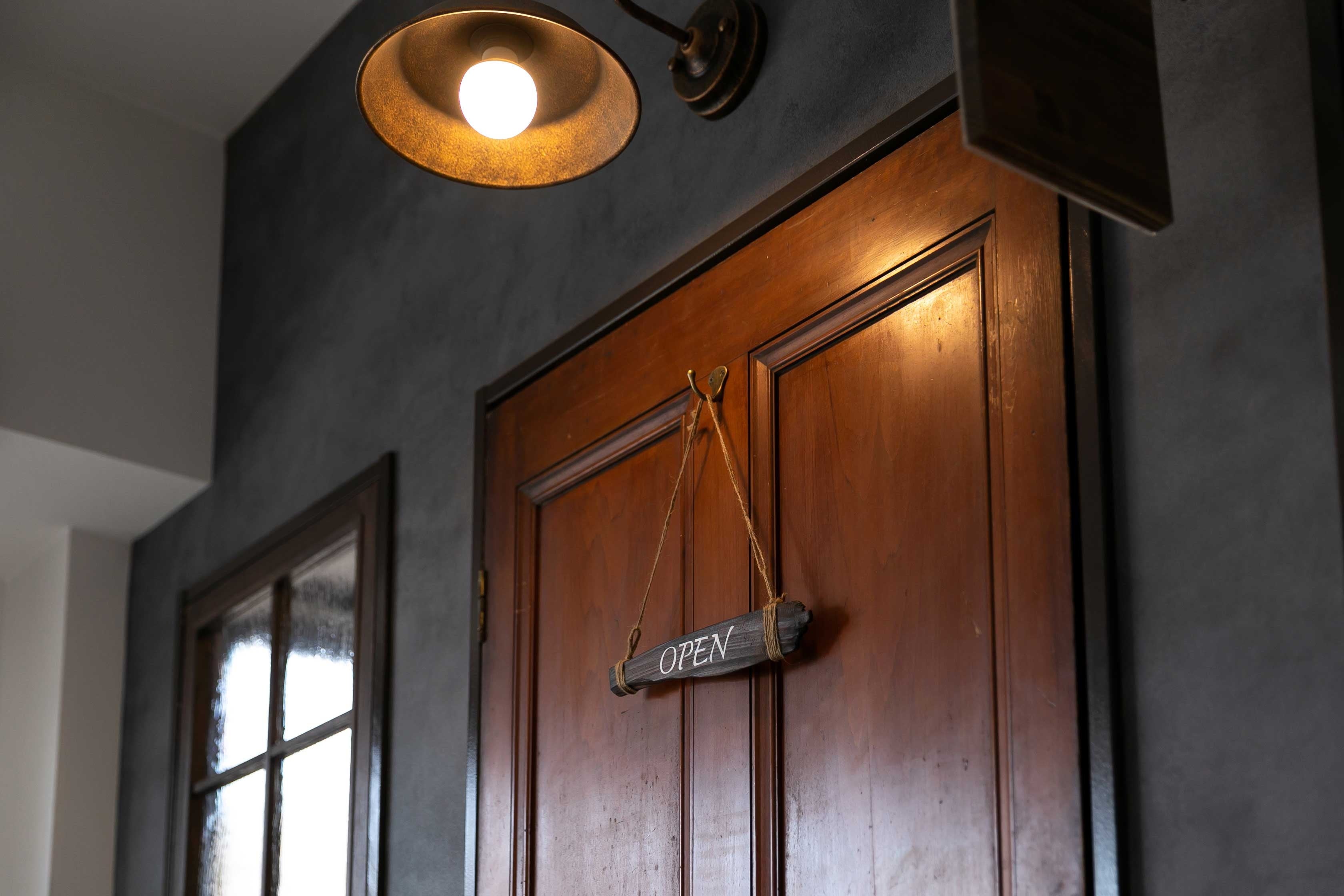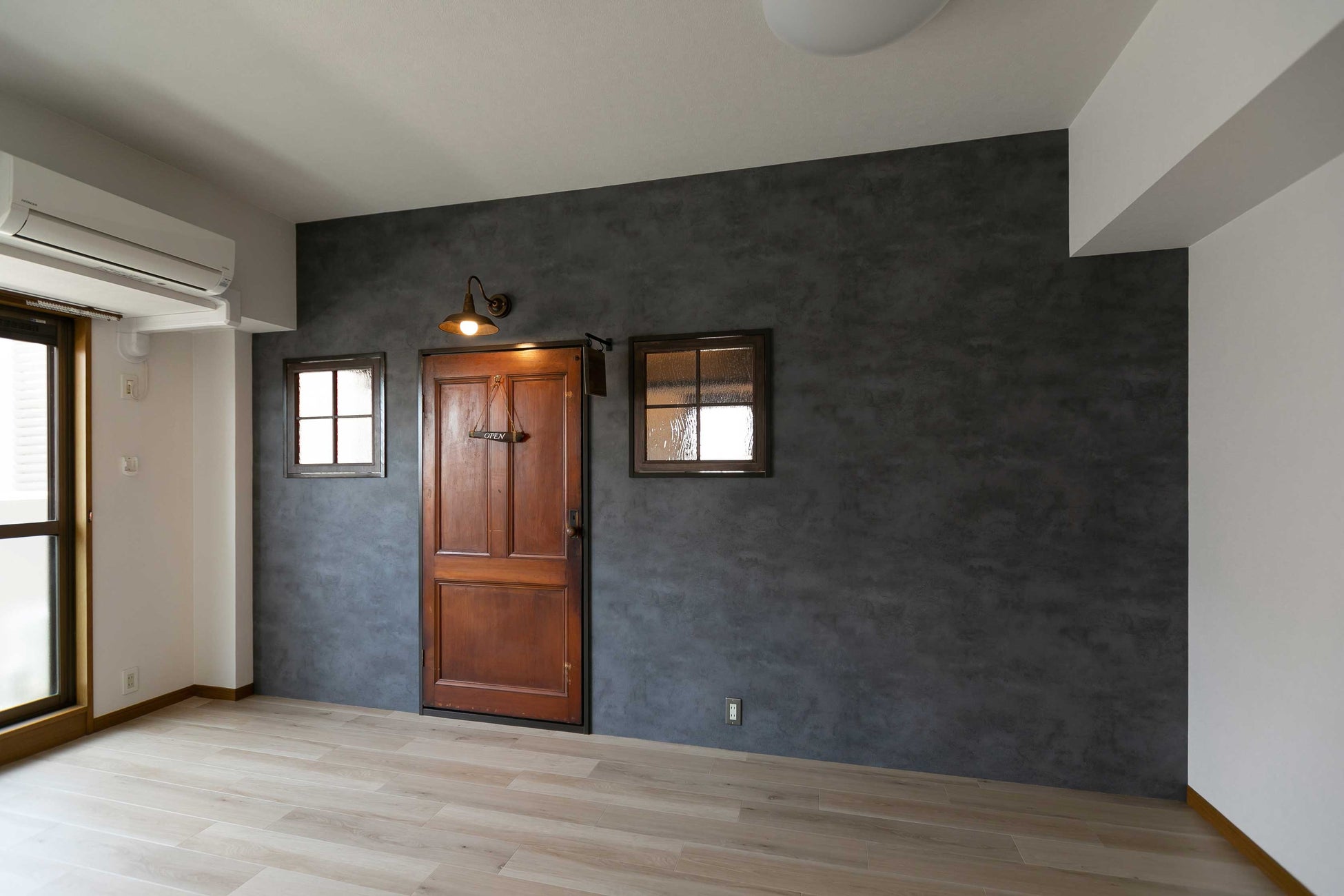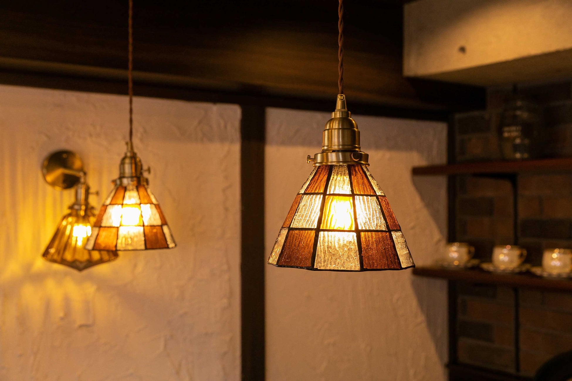 7.5帖の部屋を徹底的に純喫茶風にリノベーションしました。机や椅子も木製アンティーク調のアイテムで揃え、柔らかい光を放つ照明で演出。また、窓にはステンドグラス風フィルムを貼って住宅感を軽減しました。さらに備え付けのエアコンもイメージを崩さぬよう木目調のカッティングシートで覆い、温かみのある純喫茶の雰囲気に溶け込むようにするなど、自宅に居ながらもドアを開けると本当の純喫茶に来店したかのような、これまでの&room随一とも言える作り込みになっています。