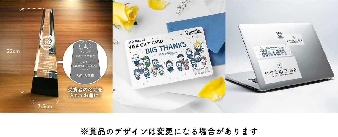 賞品:名入れトロフィー、バニラVisaギフトカード3万円分