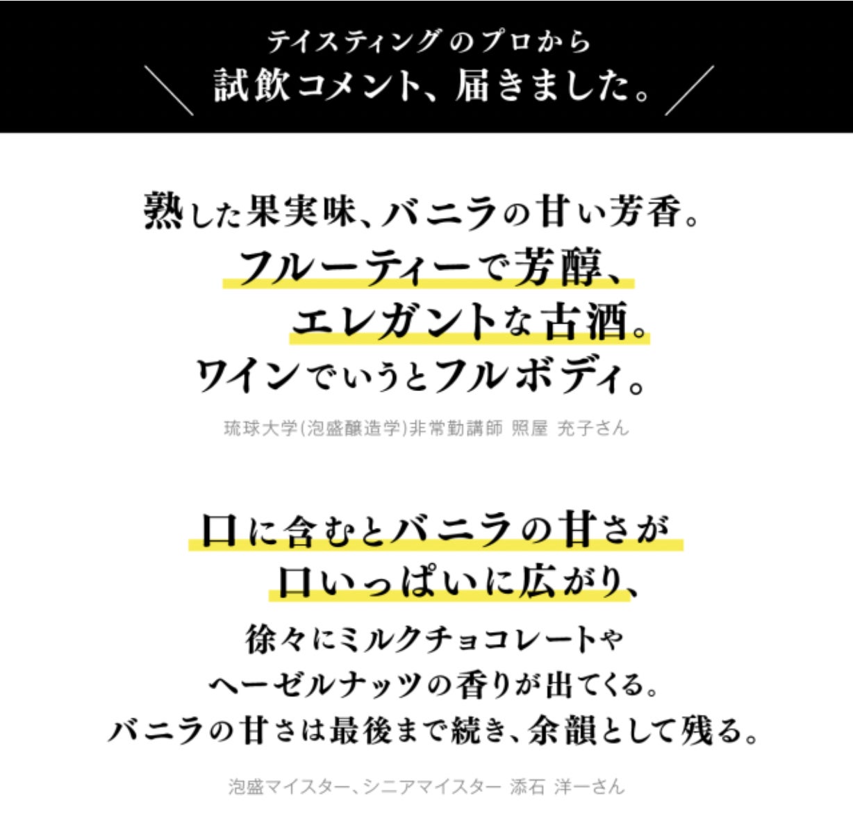 「まだ見ぬ至高の古酒」を掲げ。