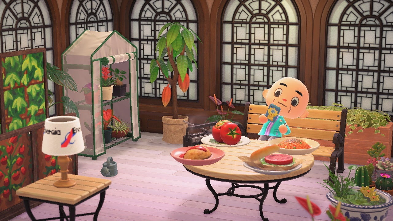 ここは、CO2トマト温室兼飲食スペース。CO2を吸収させる作業はこの部屋で行っているよ。さっき何を作ろうか悩んでいたしゃいん、トマト料理を作りすぎちゃったみたい。食べる前に、スマホでパシャリ。映え写真は撮れたかな?