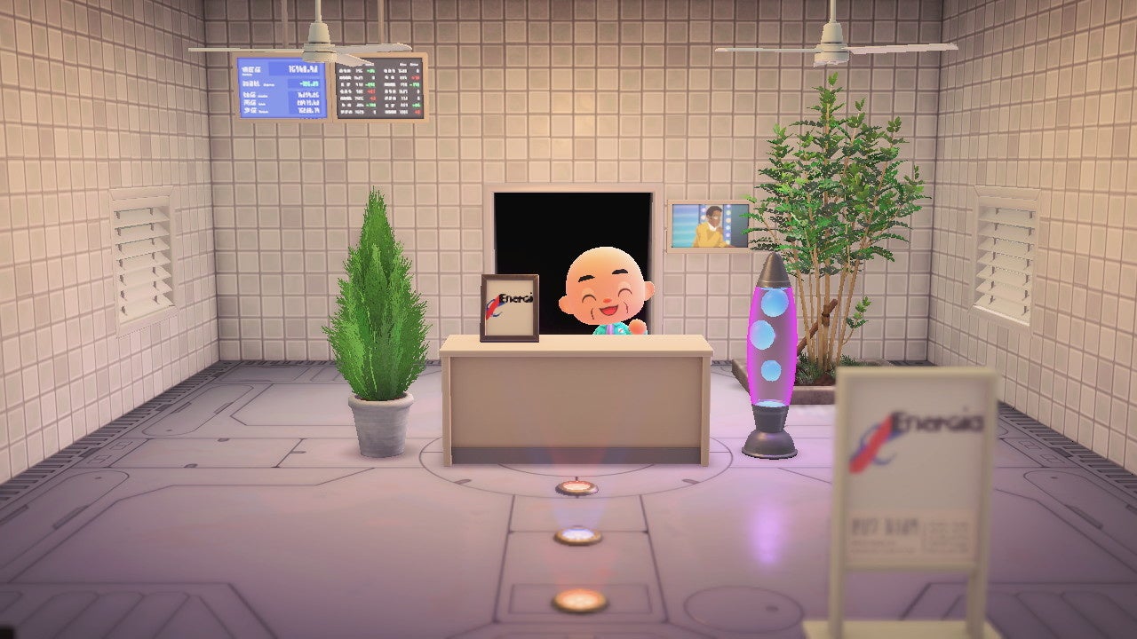 奥のコントロールルームでは、しゃいんがえねるぎあ島内の電気を管理中。しゃいん、発電のさらなる未来に思いを馳せている模様…。