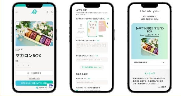 AnyGiftは、相手の住所を知らなくてもLINEやメールで贈ることができる"eギフト機能"を、ECサイ