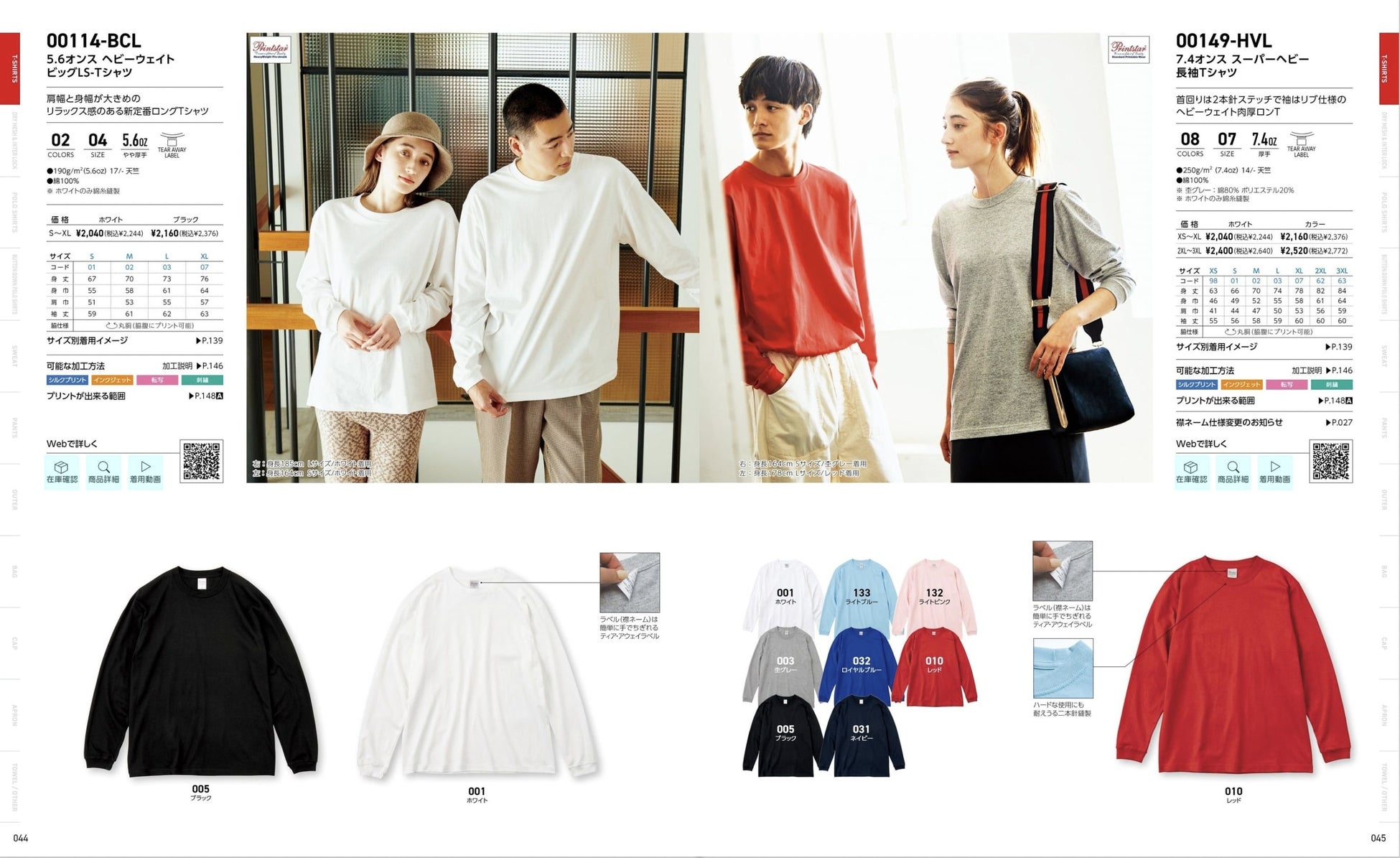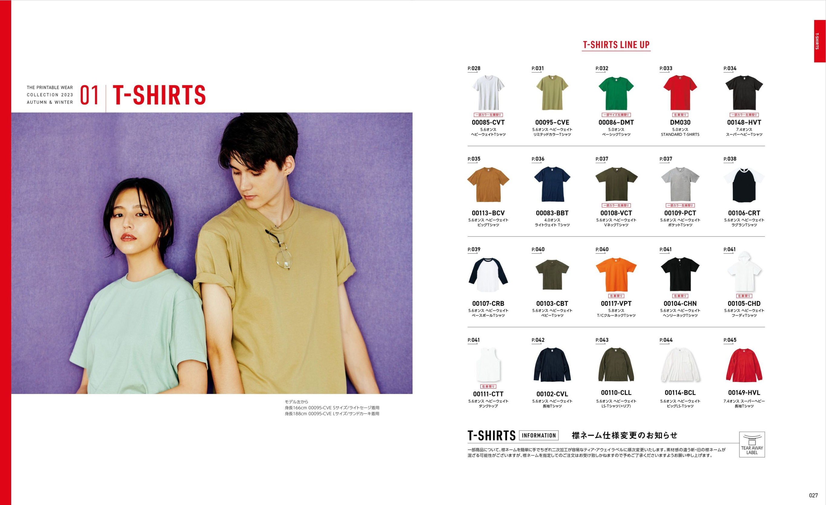トムスは年に2回、最新のカタログを発刊し、オリジナルウェアが作れるお店、ECサイトなどを通して、全国の皆さまにお届けしています。2023年9月に発刊した『THE PRINTABLE WEAR COLLECTION 2023 AUTUMN & WINTER』は、Tシャツやスウェットをはじめとした、トムスで取り扱う全商品、計108品番を掲載しています。