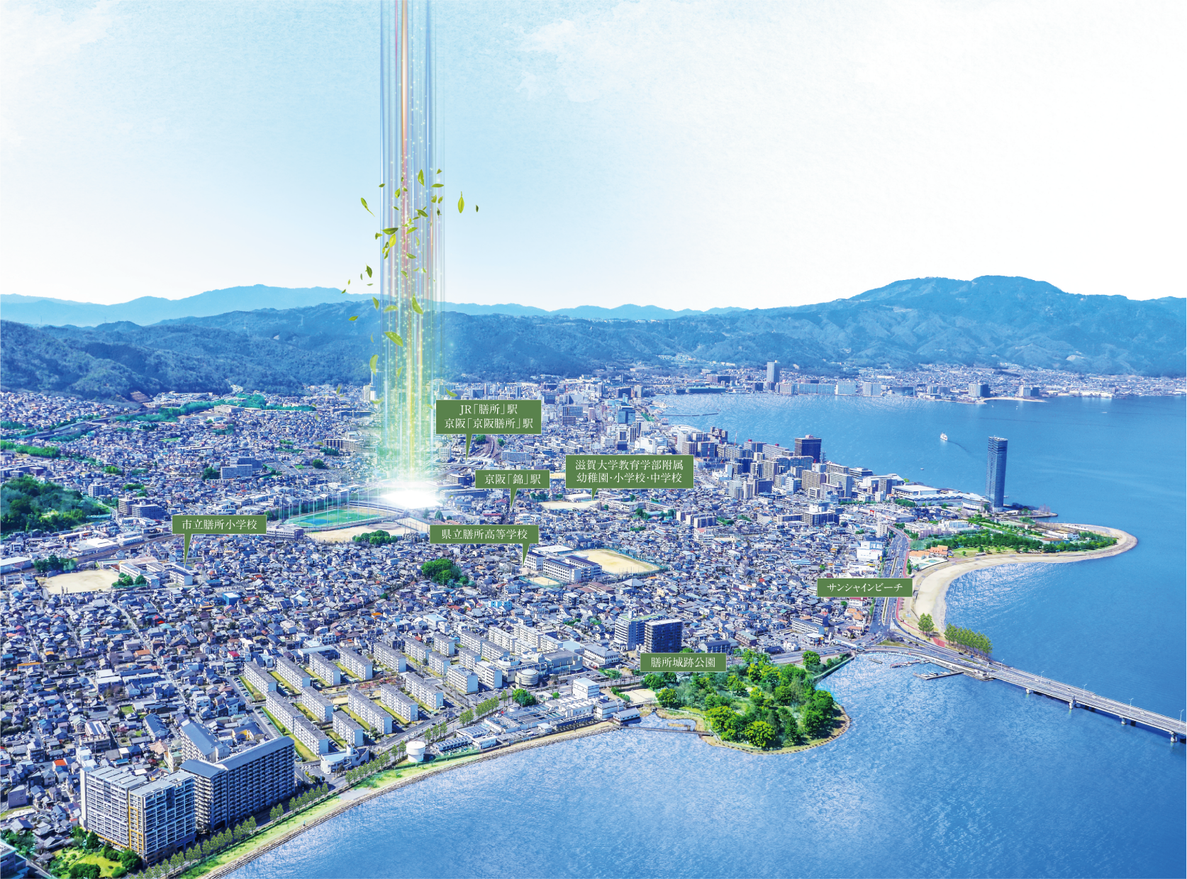 本物件はJR東海道本線(琵琶湖線)「膳所」駅、京阪石山坂本線「京阪膳所」駅、京阪石山坂本線「錦」駅の2線3駅が利用でき、JR「膳所」駅から京都駅へは3駅13分となります。本物件周辺は教育施設も身近で子育て環境が整っています。さらに本物件は大型車も駐車可能な自走式平面駐車場やゲストルームをはじめラウンジ、キッズルームなど多彩な共用施設を設置します。好みで探す間取りプランでは琵琶湖を望む住戸や専用庭付き住戸などお選びいただけます。