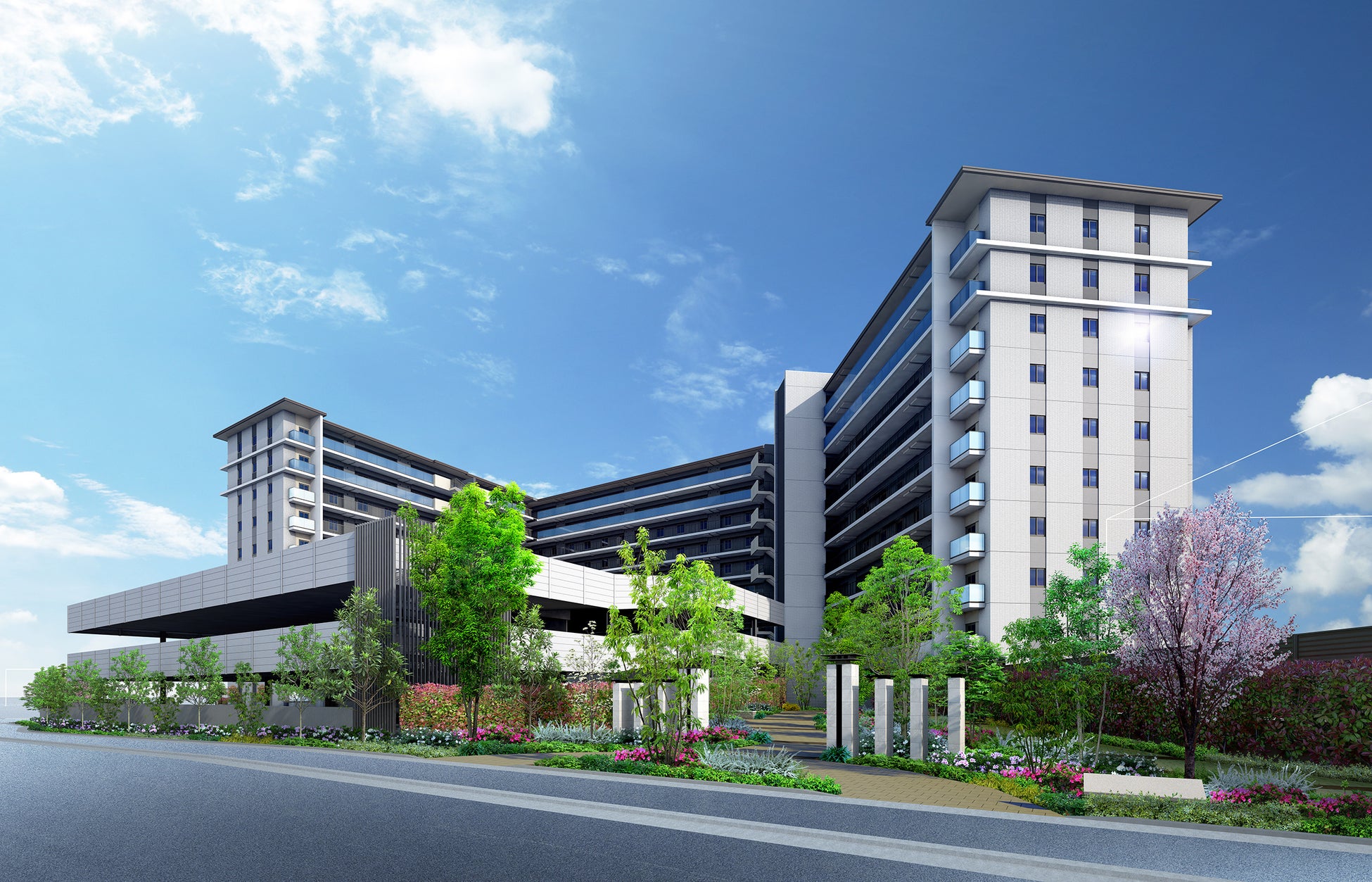 ※掲載の完成予想図は計画段階の図面を基に描いたもので実際とは異なります。また、今後変更になる場合があります。なお、外観の細部・設備機器・配管類及び電柱・架線・道路標識・周辺建物等は一部省略または簡略化しております。植栽につきましては特定の季節の状況を表現したものではなく、竣工時には完成予想図程度には成長しておりません。タイルや各種部材につきましては、実物と質感・色等の見え方が異なる場合があります。なお、周辺の環境は変わる可能性があり、眺望は将来に渡って保証されるものではありません。
