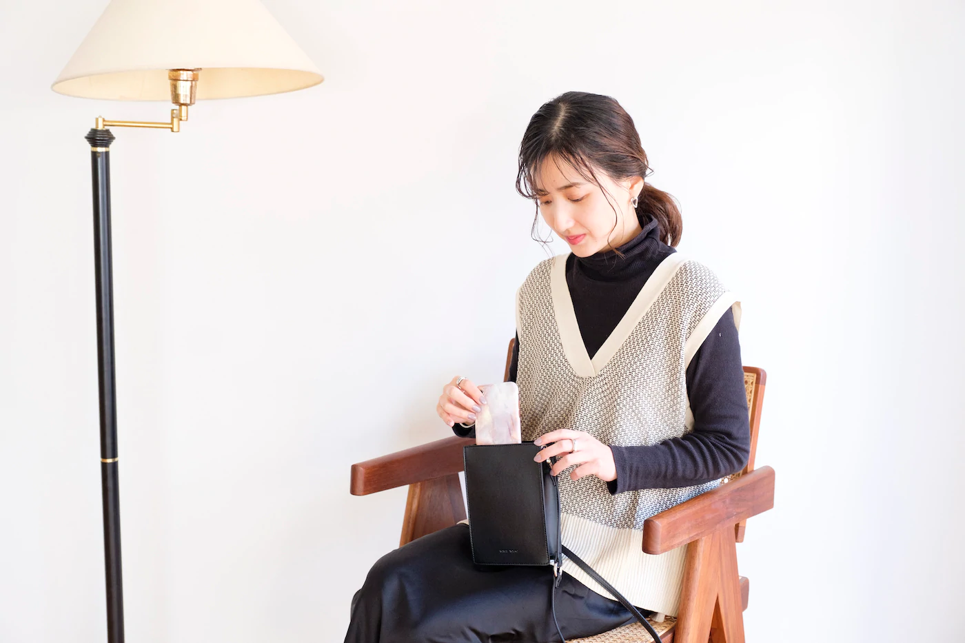 一見するとシンプルなデザインながら、内側にはアクセントとなるステッチがふんだんにあしらわれています。浅いポケットにも収まりが良い、機能性とデザイン性を兼ね備えたスリムなデザインが魅力のアイテムです。