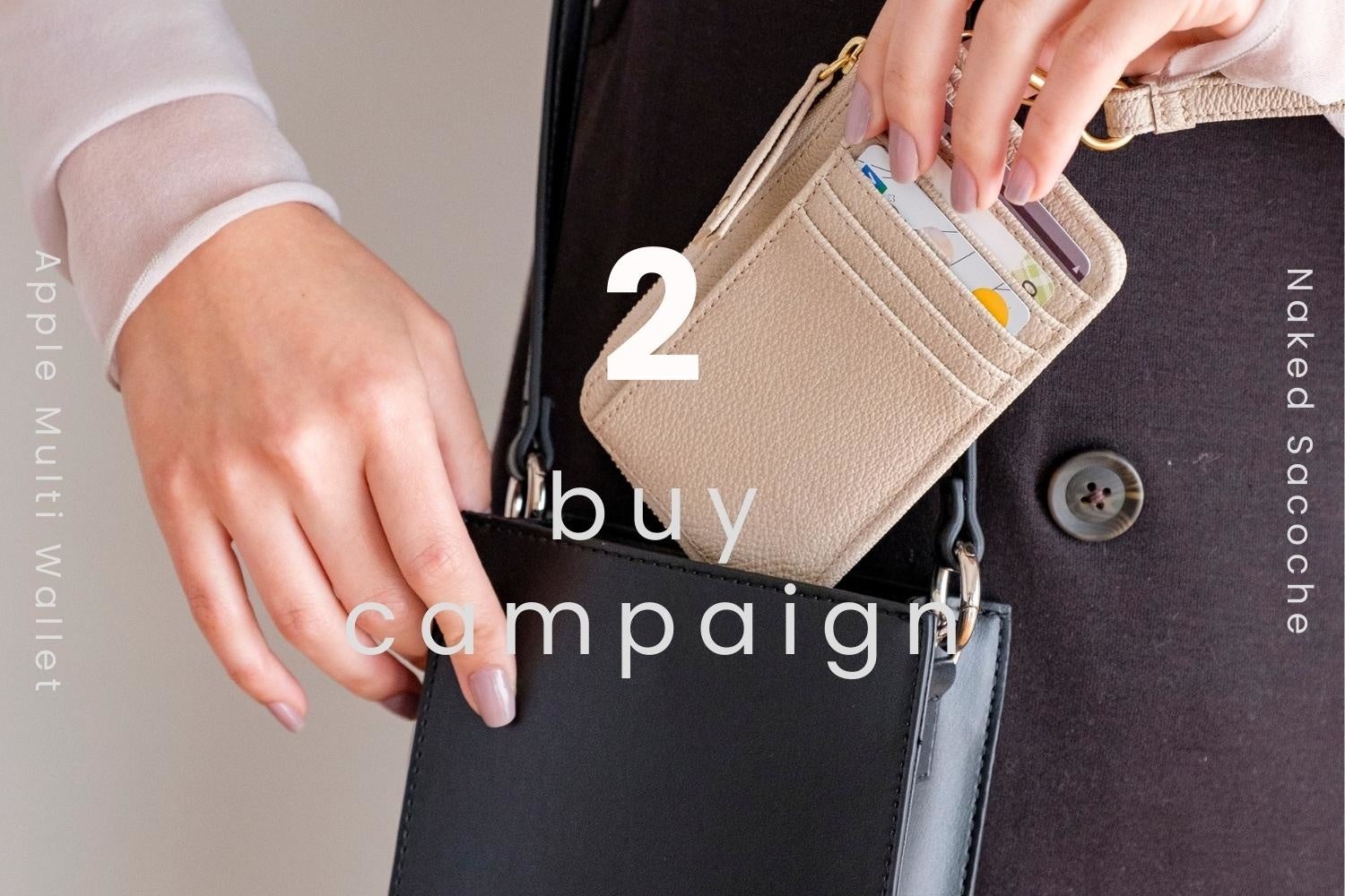「2 buy Campaign」は、大人気の「Naked Sacoche(ネイキッドサコッシュ)」をご購入いただくと、「Apple Card Holder(アップルカードホルダー)」が20%OFFになるというキャンペーン。セットでご購入いただくことが多い2つのアイテムを、お買い求めやすいセット価格でご用意しました。