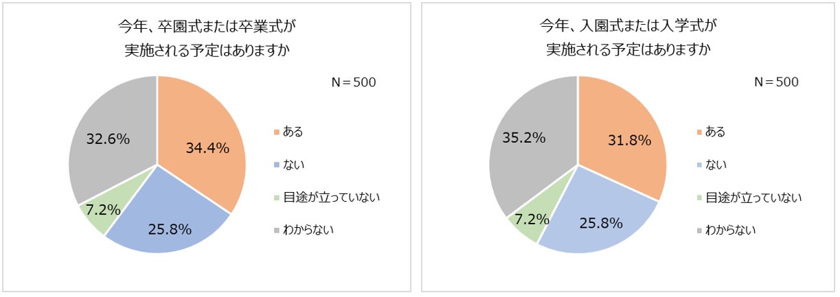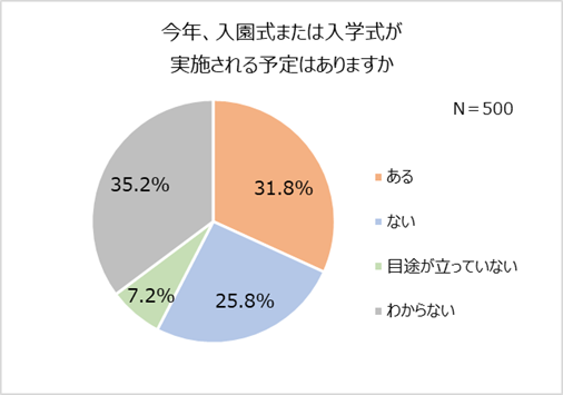 1.卒入園・卒入学の式典「実施予定あり」はわずか3割「人数制限」の条件付きは4割以上