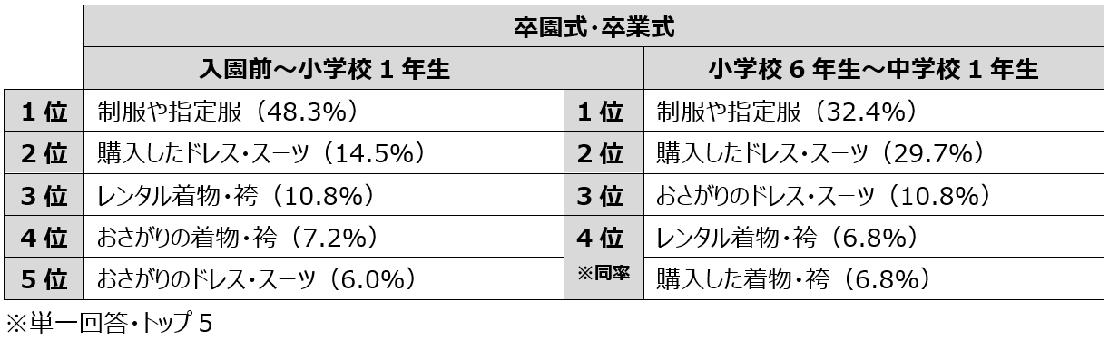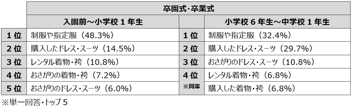 式典で子どもに着用させる服1位「制服や指定服」出席者は父親より母親が多い傾向