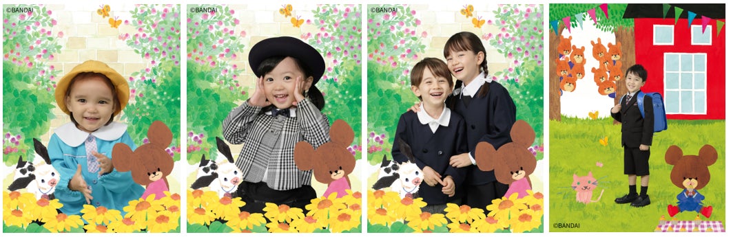 日本生まれの人気絵本シリーズ「くまのがっこう」の撮影が新登場!愛らしいくまのこきょうだいと、絵本の世界に入り込んだかのような特別なコラボ撮影をお楽しみいただけます。春らしくお花のイラストがあしらわれ、ジャッキーや仲間たちに囲まれる“ジャッキーのしあわせ”背景や、11ひきのきょうだいと一緒に学校に通っているような“くまのがっこう”背景をご用意しています。