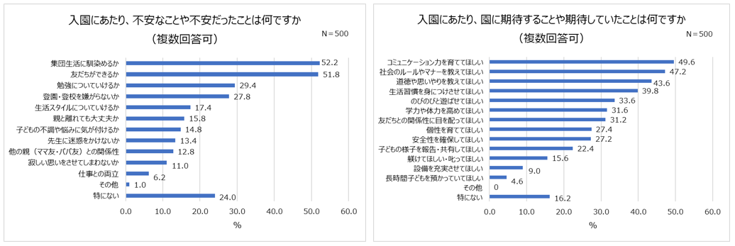 4.5割以上が入園時「集団生活に馴染めるか」「友だちができるか」に不安を抱えている