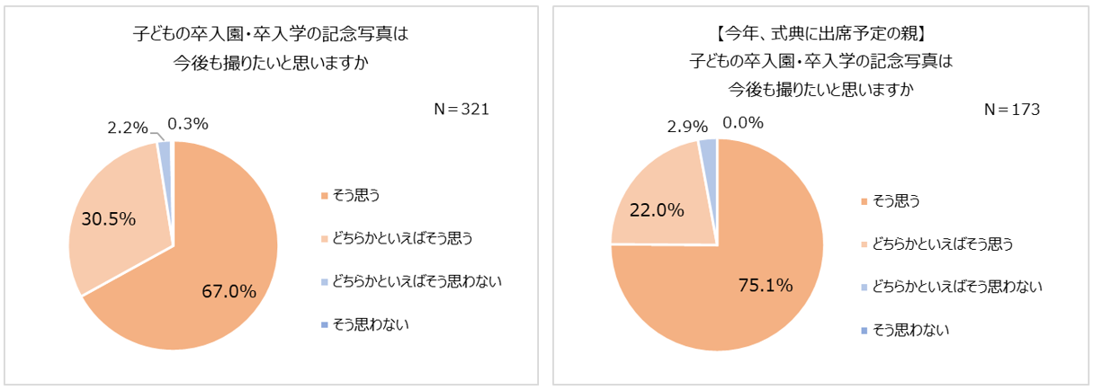 式の内容に変化も「簡素化された」「先生と距離感が近い」。祝い方1位「記念写真を撮る」。9割以上が「今後も撮影したい」。ハレの日をひときわ輝く思い出に!スタジオアリスの撮影プラン