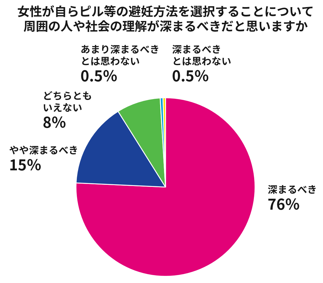 これにより、ピル等の女性主体の避妊方法を女性が自ら選択することについて、社会全体の理解が深まることを強く求めていることがわかりました。