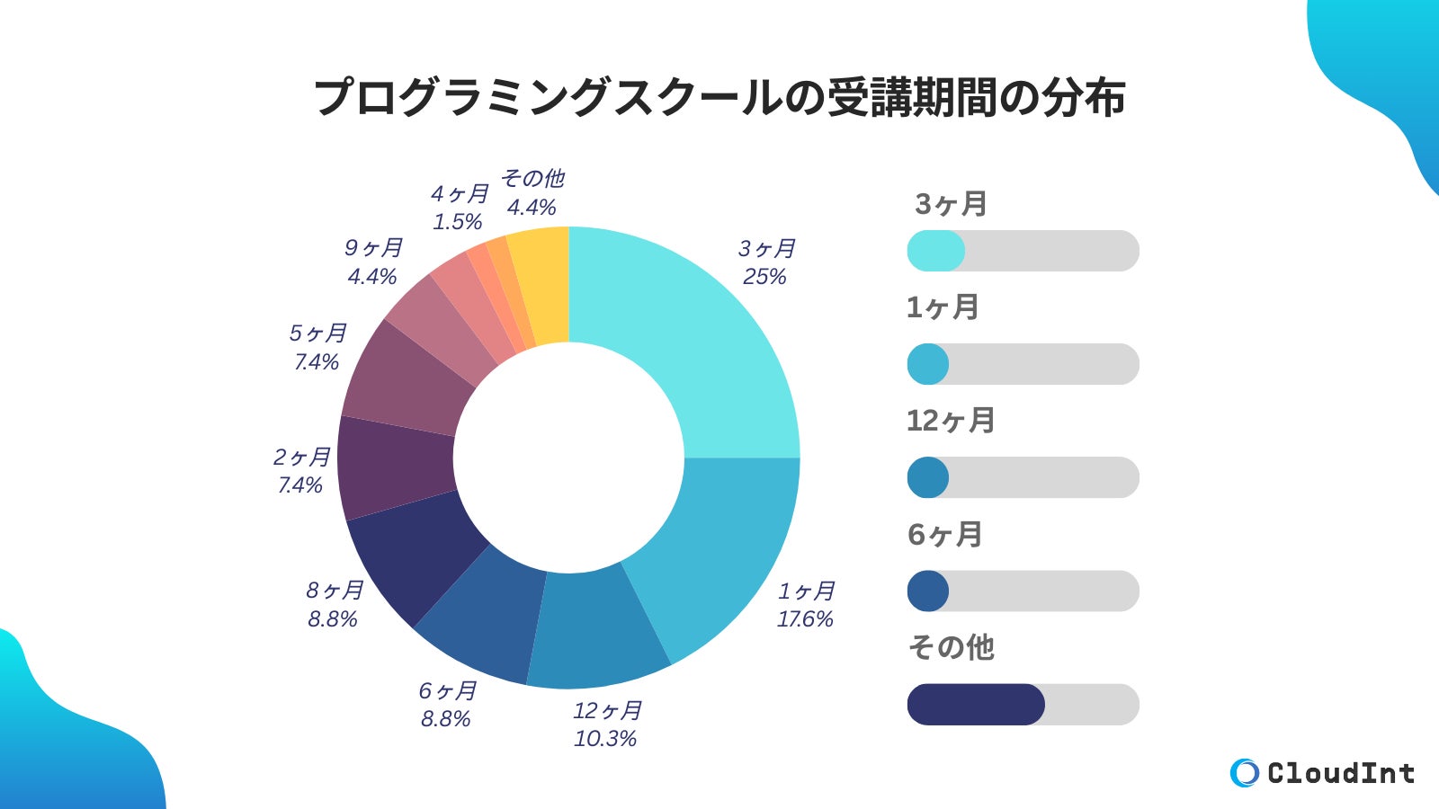 プログラミングスクール情報メディア「CloudInt」はプログラミングスクールの受講期間の実態調査結果を発表しました。