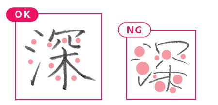 その日に練習するお手本の位置を中央に配することで、練習1ではなぞり書きの練習を、練習2では、すぐ左にあるお手本を見ながら練習することができる学びやすい配列になっています。