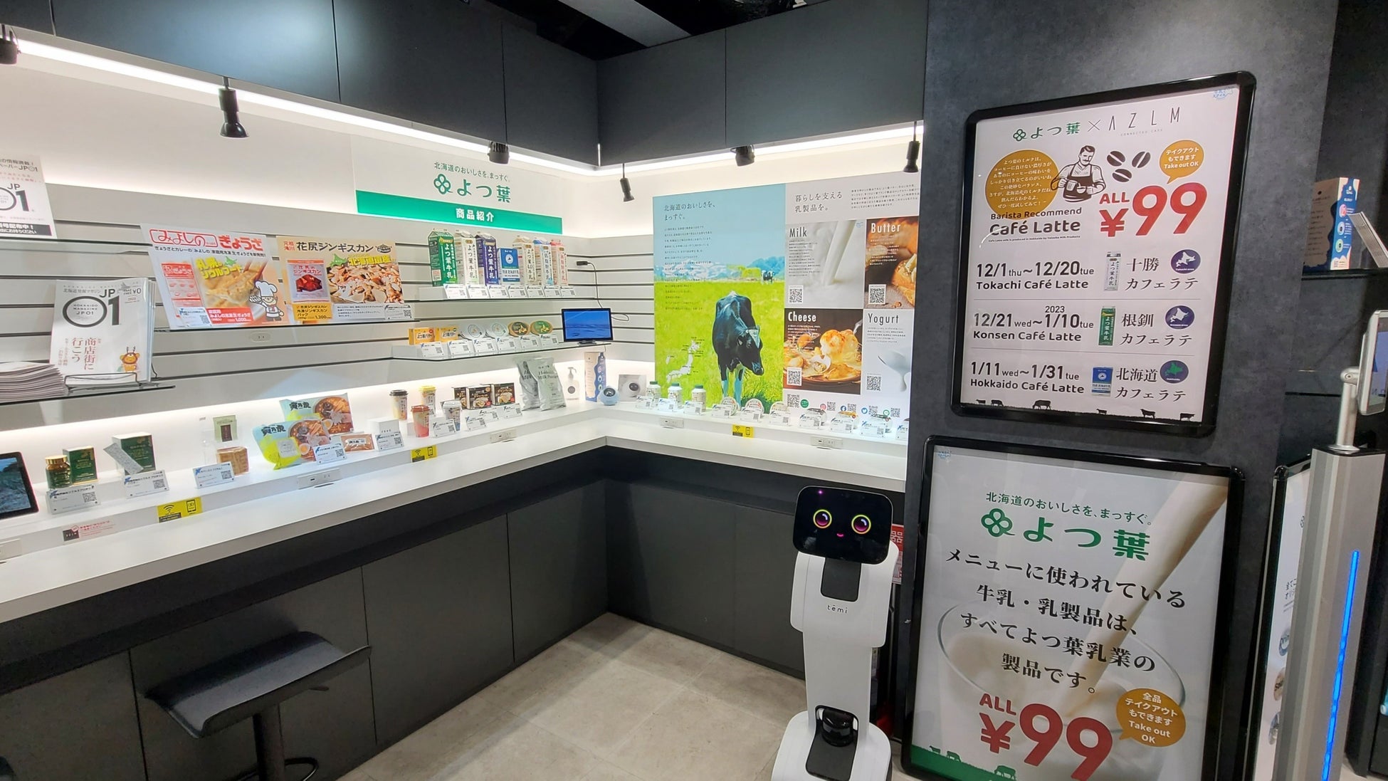 『AZLM CONNECTED CAFE 渋谷地下街店』にて、よつ葉乳業の商品をディスプレイ。よつ葉乳業の北海道ミルクを使ったオリジナルメニューを99円で提供。一方、世界最大級のメタバースイベント「バーチャルマーケット2022 Winter」内のバーチャルカフェ「AZLM CONNECTED CAFE」にも、よつ葉乳業のPRコーナーを開設。