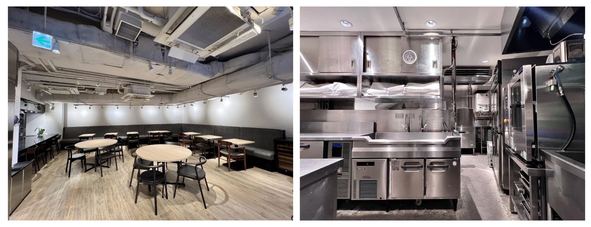 ■最大50名収容可で会議や各種イベントもできるスペース。商品開発可能な製造免許付のキッチンあり。