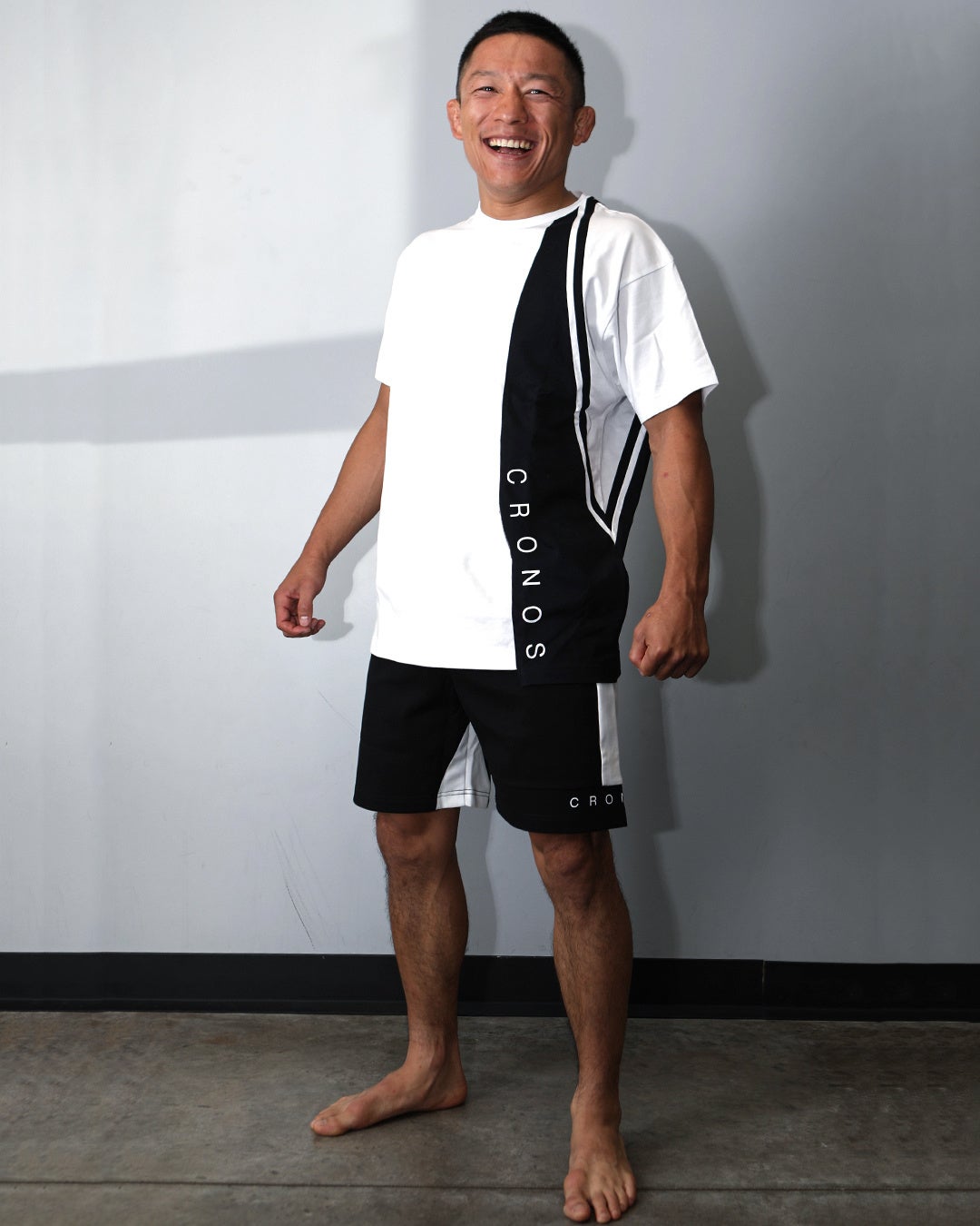側面にライン切り替えを施した CRONOS ショーツです。 配色によるプリントを施し、CRONOS らしいデザインに仕上げました。 ショート丈で運動性を求めながらも、モダンなシルエットに仕上げ、タイムレスに使用で きるデザインでコーディネートの幅が広がります。