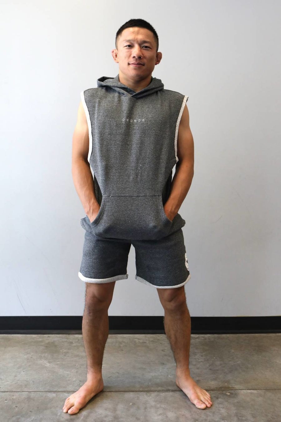 そのままでの着用は勿論、特徴的な大きめのアームホールの為、ロングスリーブやTシャツに羽織るルックも構成できる着回しやすいフーディです。裏毛素材を使用し、これからの季節のトレーニング、タウンユースに最適です。