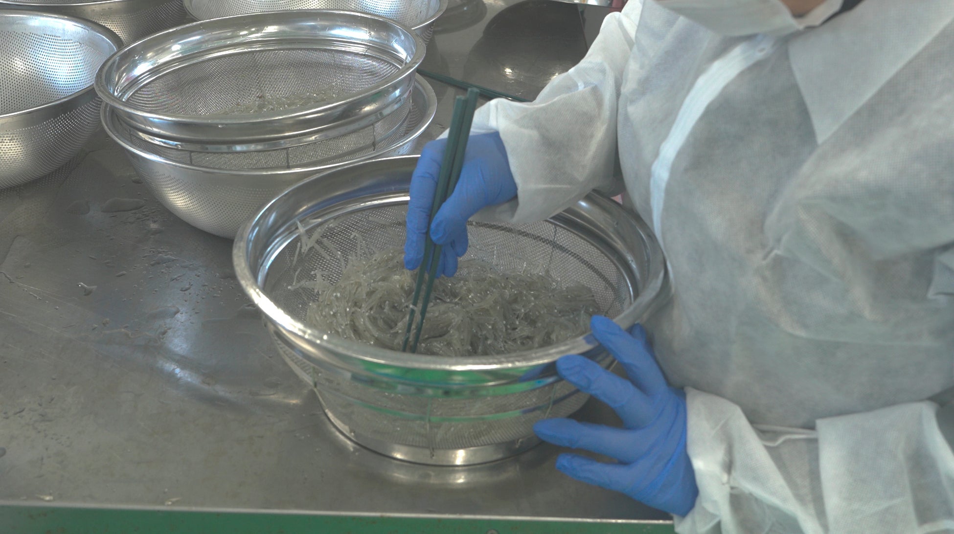 品物は沖で漁師の目利きによって個体のサイズや他の混ざり物などがなく純度が高いものなどをトータルで判断し、クリアしたもののみが輝白の原料となります。