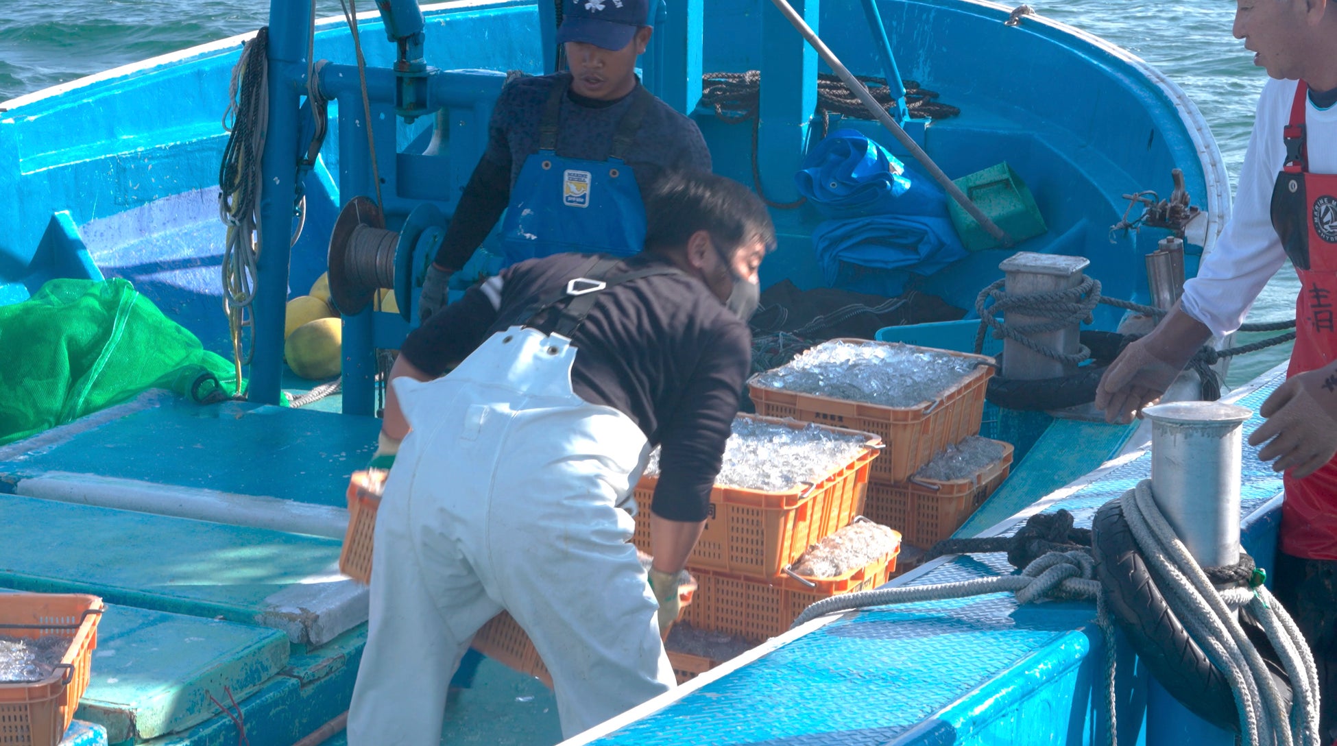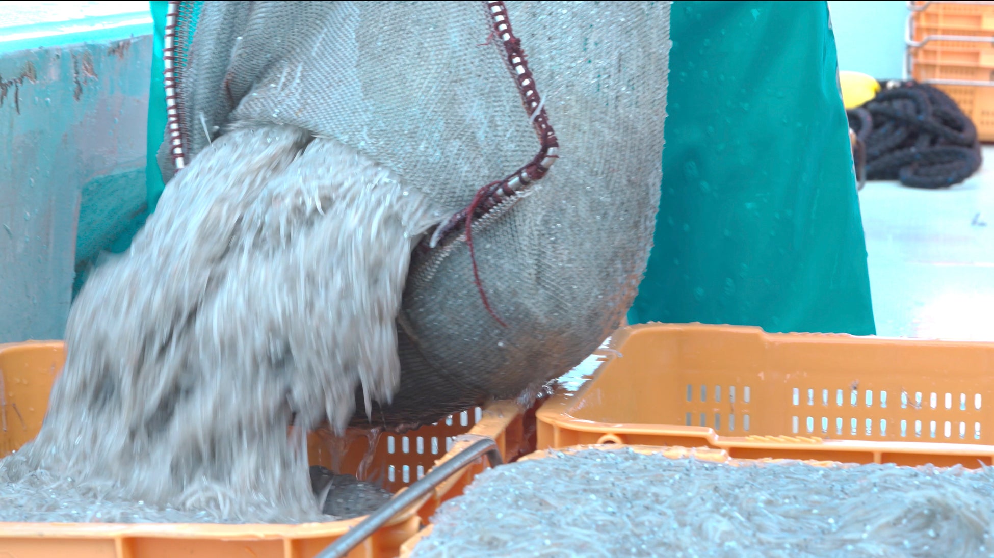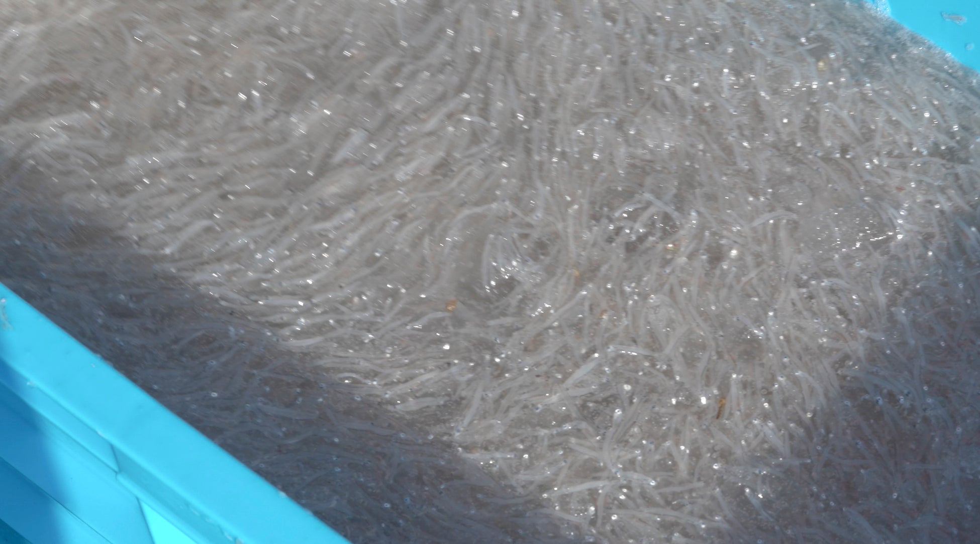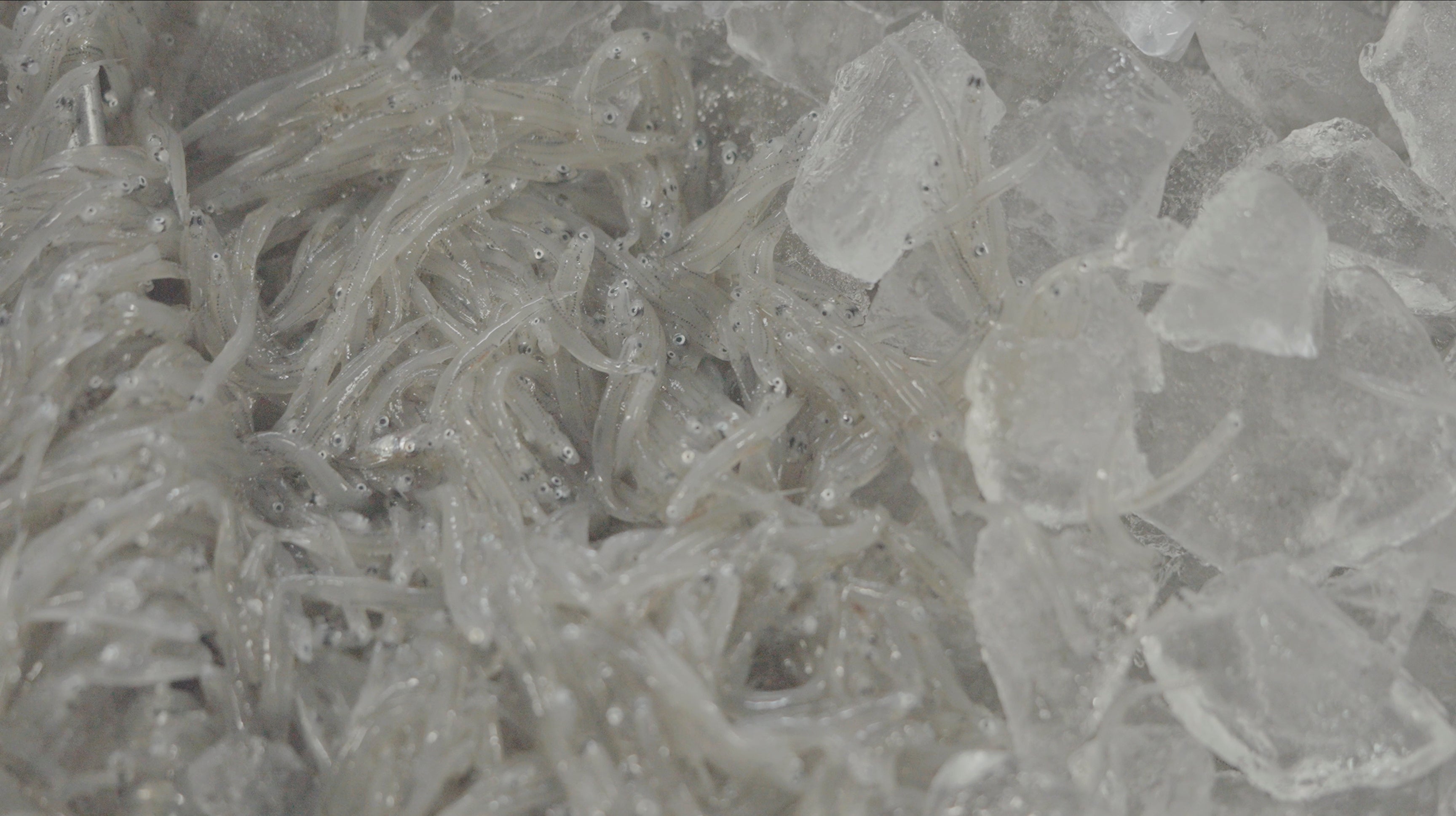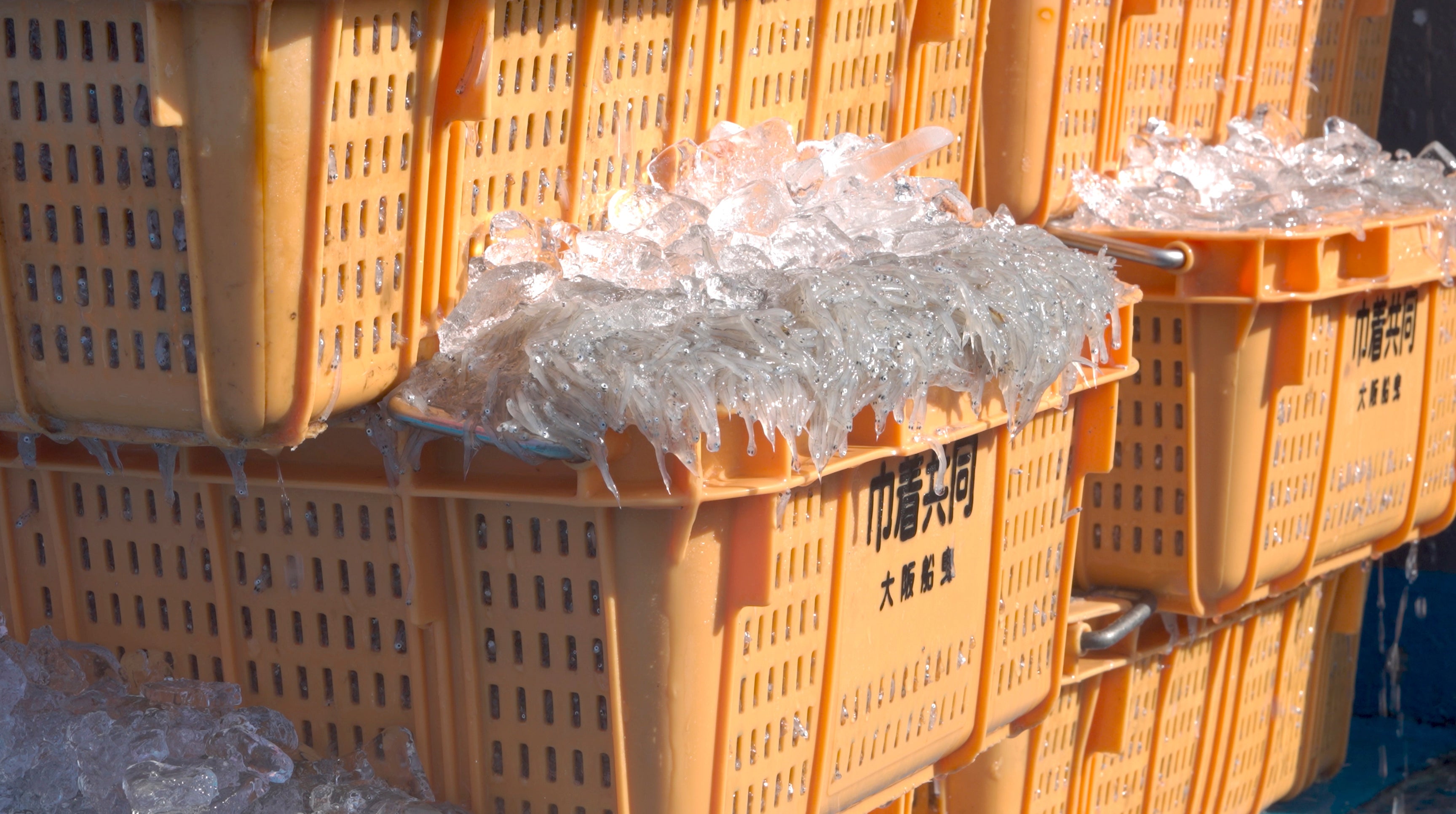 漁師の目利きをクリアしたシラスはスラリー氷で瞬間凍結します。