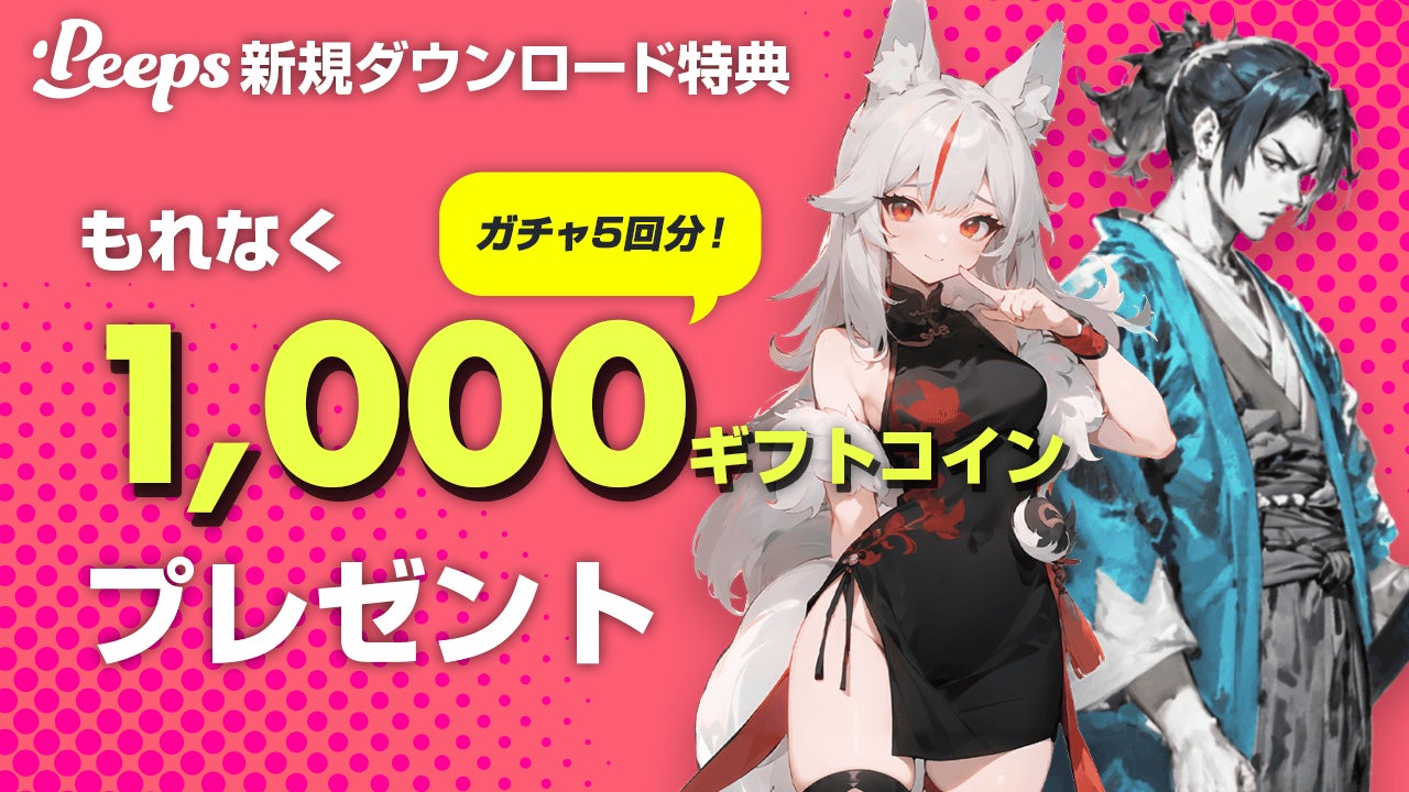 新規ダウンロードしていただいた全員に、Peepsでアバターガチャやギフトを贈る際にご利用いただける1,000円分のギフトコインをプレゼントいたします。