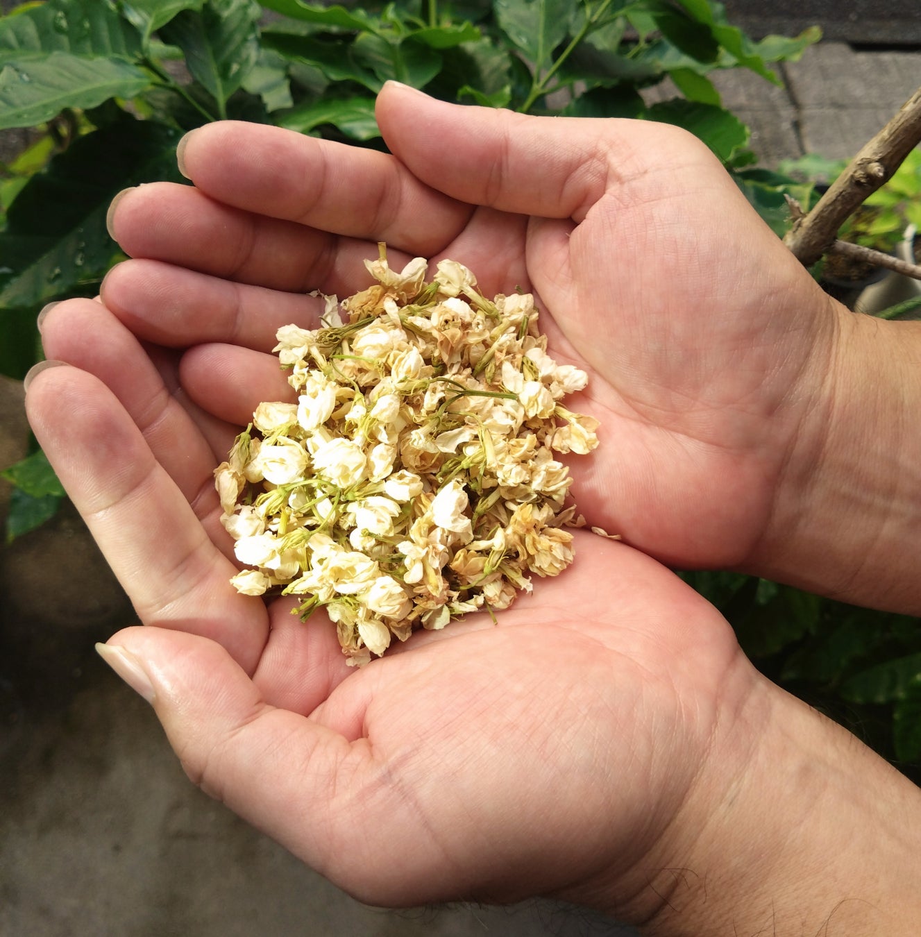 夜になると花が開いて強い香りを漂わせる「夜香木(やこうぼく)」。