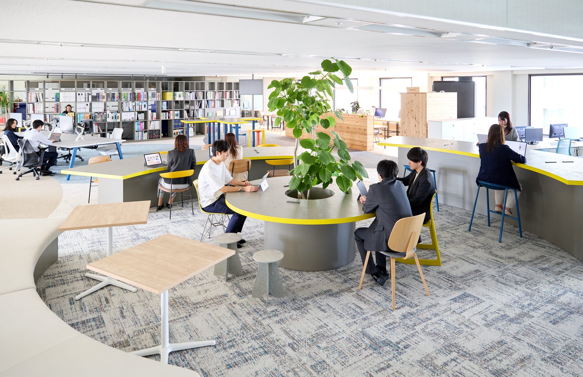 「+1℃」をコンセプトとして、人や自然とのつながりが循環する[サステナブルオフィス]としてデザイン。廃棄物を限りなくゼロにする「廃棄ゼロ」への挑戦をはじめとして、環境にやさしいマテリアルの厳選、ダイバーシティに対応したゆとりある空間設計を施した環境と社会にやさしい循環型オフィスです。