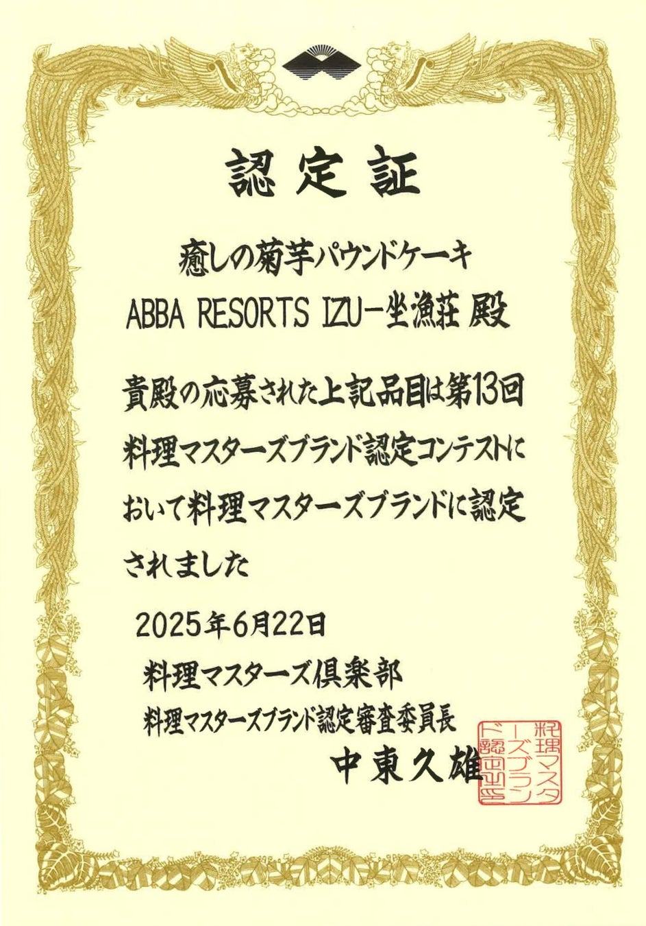 こうした取り組みが高く評価され、『癒しの菊芋パウンドケーキ』は2025年、「料理マスターズブランド」に認定されました。これは、地域の一次産品を活かした優れた加工品に贈られる栄誉であり、本商品が持つ“健康・美味しさ・環境貢献”という価値が、プロの料理人たちにも認められた証です。
