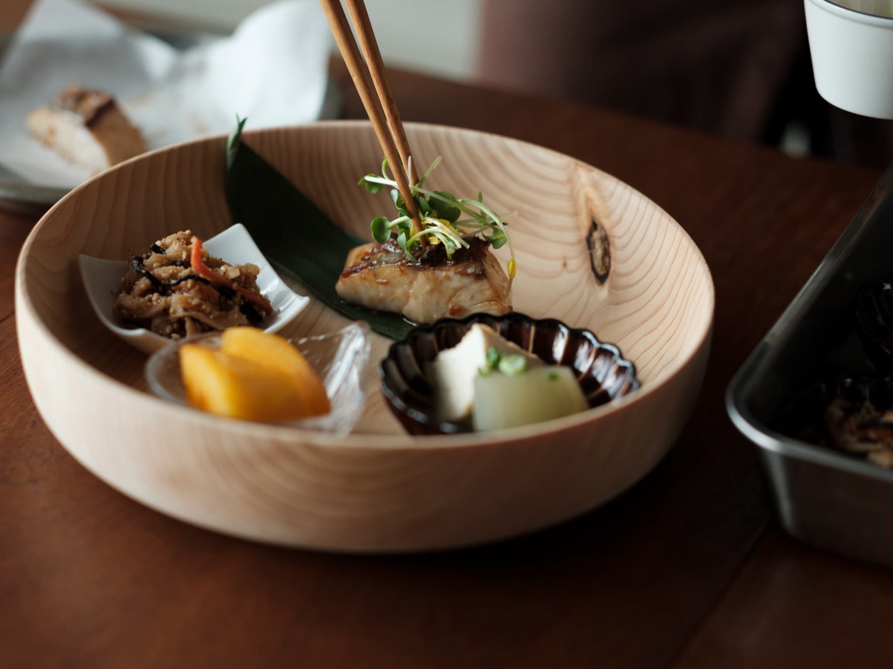 五島の食材を使った手作りの朝食を、五島のヒノキから削りだされたオリジナルの木箱に詰めて提供します。あたたかい手触りの木箱の蓋を開けると美味しそうな香りとともにお料理が姿を現し、朝のわくわくするひとときを楽しめます。
