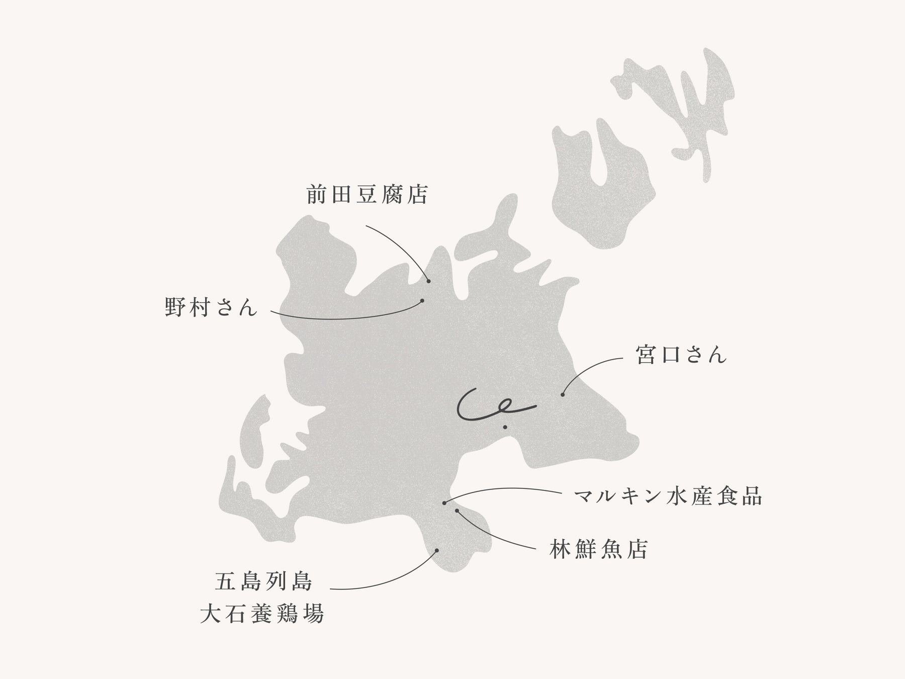 コンセプトは、「五島を知り、ふるさとを想う」。住み慣れた地域を離れて五島を訪れた方々が「きょうの朝ごはん」を通して五島の地域に触れることで、自分のふるさとに想いを向ける朝のひとときとなって欲しいという想いで考案しました。暦ではなく移り変わる自然から季節を感じ、暮らしに取り入れてきた五島の人々。カラリト五島列島の朝ごはんは、そんな五島の人々が暮らしの中で昔から食べている食材を取り入れ伝えることで、食材や生産者さん、島の暮らしと食べる人をつなぐ、ハブの役割を担っていくことを目指しています。
