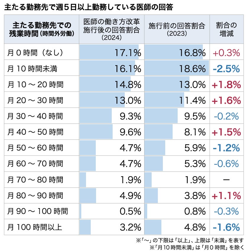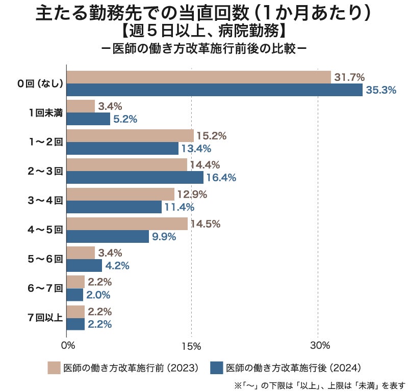 「医師の働き方改革」施行前後で、医師の勤務の実態はどう変化したのか-医師1,596名のアンケート結果