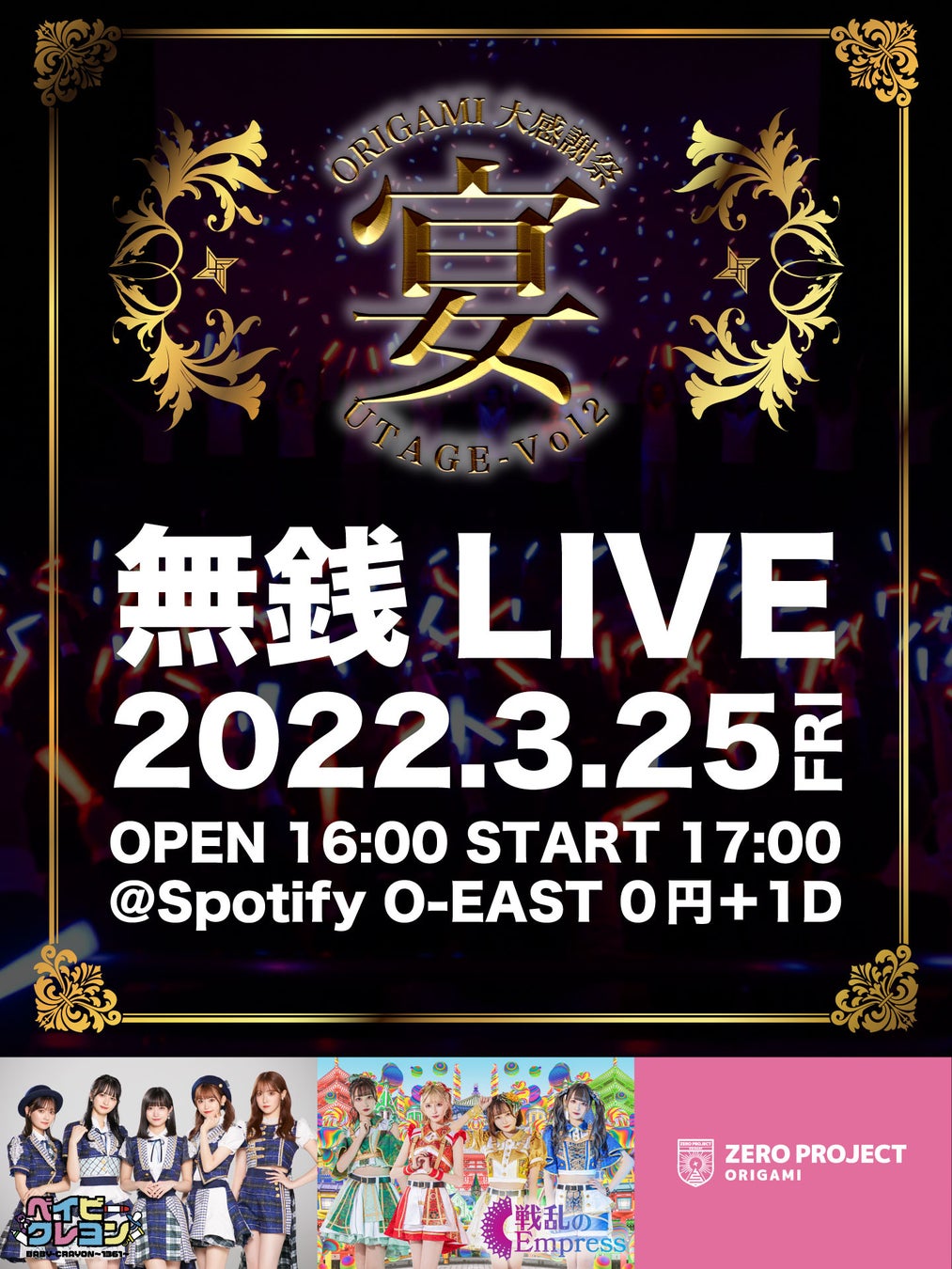 【無銭アイドルライブ】ORIGAMI 大感謝祭「宴 Vol.2」が3 / 25(金)Spotify O-EASTにて開催!