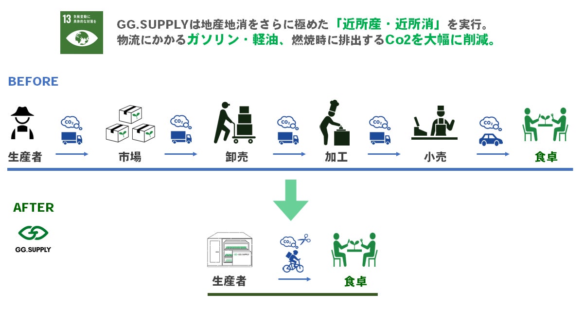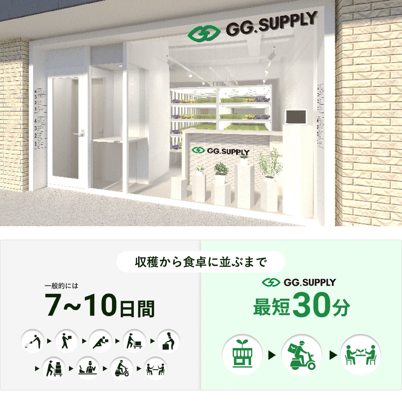 GG.SUPPLY はそんな現代の野菜物流の課題を解決するべく、郊外から都会に畑を持ってくることにより、