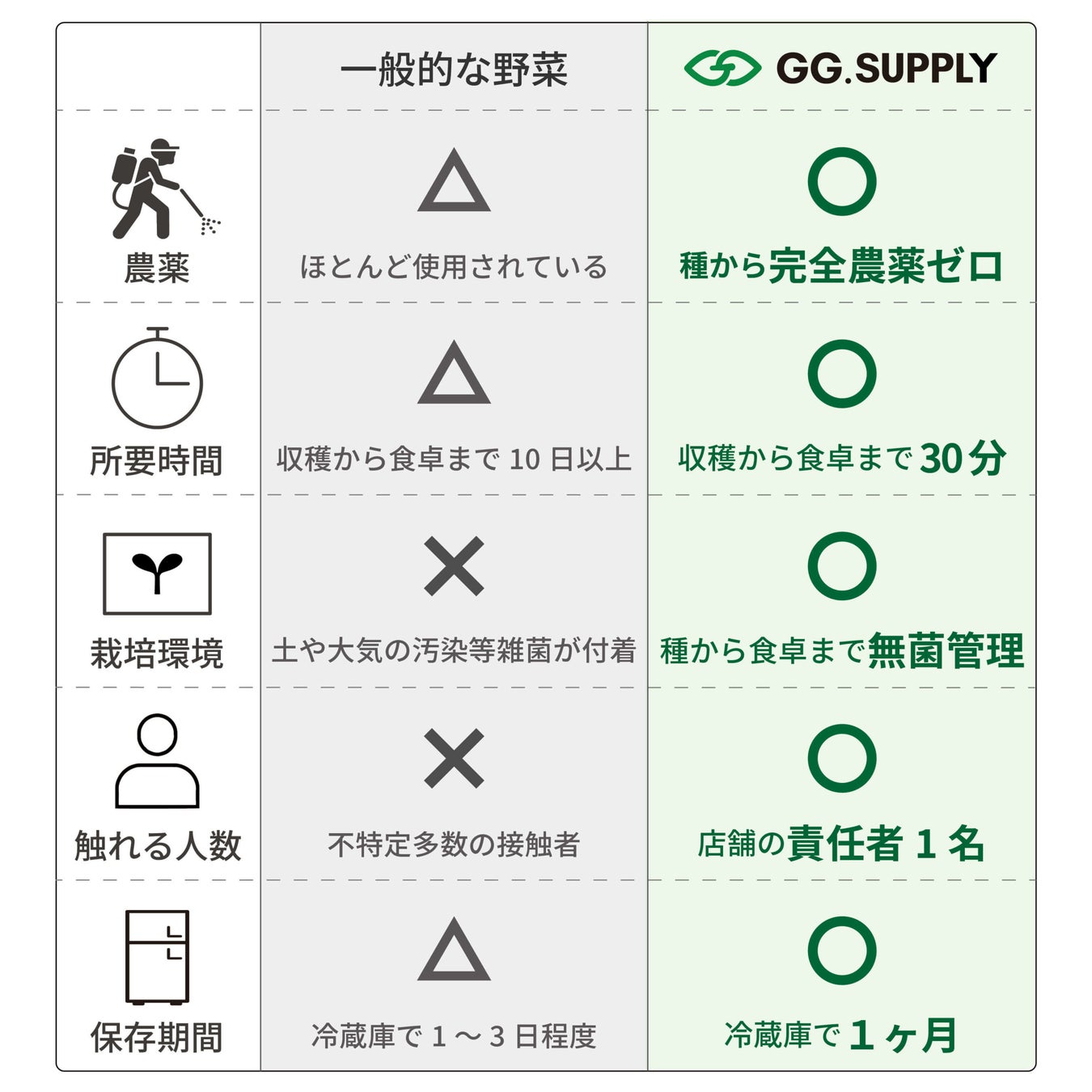 ■一般的な野菜とGG.SUPPLY常備野菜との比較