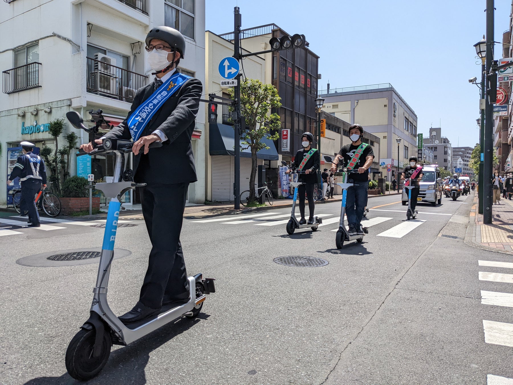 世界No.1マイクロモビリティサービスBIRDを日本で展開するBRJ株式会社(読み方:ビーアールジェイ かぶしきがいしゃ 本社:東京都港区、代表取締役/CEO:宮内 秀明、以下「BRJ」)は、4月10日11時より、電動キックボード「BIRD(バード)」を地域住民に安全利用いただくことを目的として、三鷹署が実施する交通安全車両パレードに初参加しました。