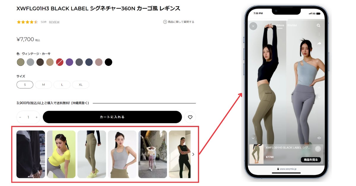 XEXYMIXでは、Instagramリールで動画コンテンツの発信に力を入れていました。 ファッションブランドにおいて、動画はサイズや素材感、コーディネートのイメージを伝えるのにとても効果的です。そのためSNSでの発信にとどまらず、ECサイト内で動画を有効活用できる方法を探していました。