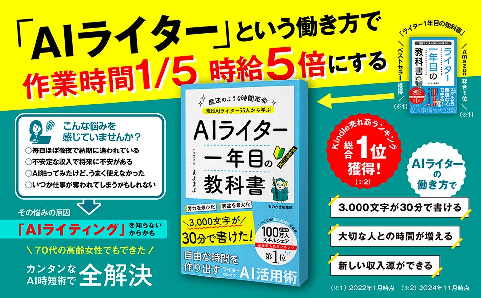 現役AIライター55名の実践的知見を集約した『AIライター1年目の教科書』を発売。