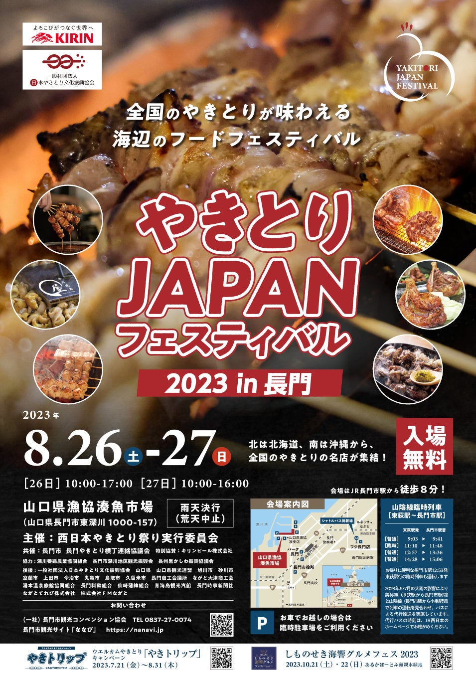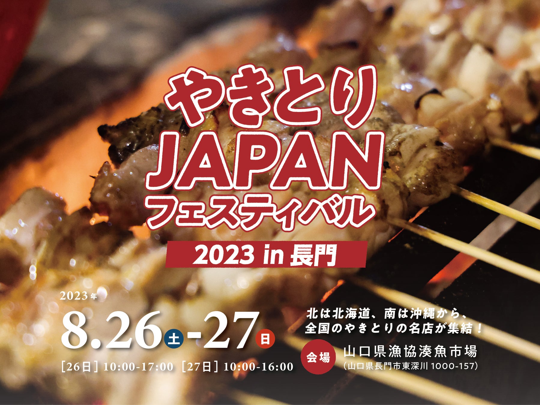 日本6大やきとりタウンの一つである“長門市”に全国のご当地焼きとり店が一斉に集う「やきとりJAPANフェスティバル2023in長門」が、8月26日(土)、27日(日)の2日間、本市で開催されます。