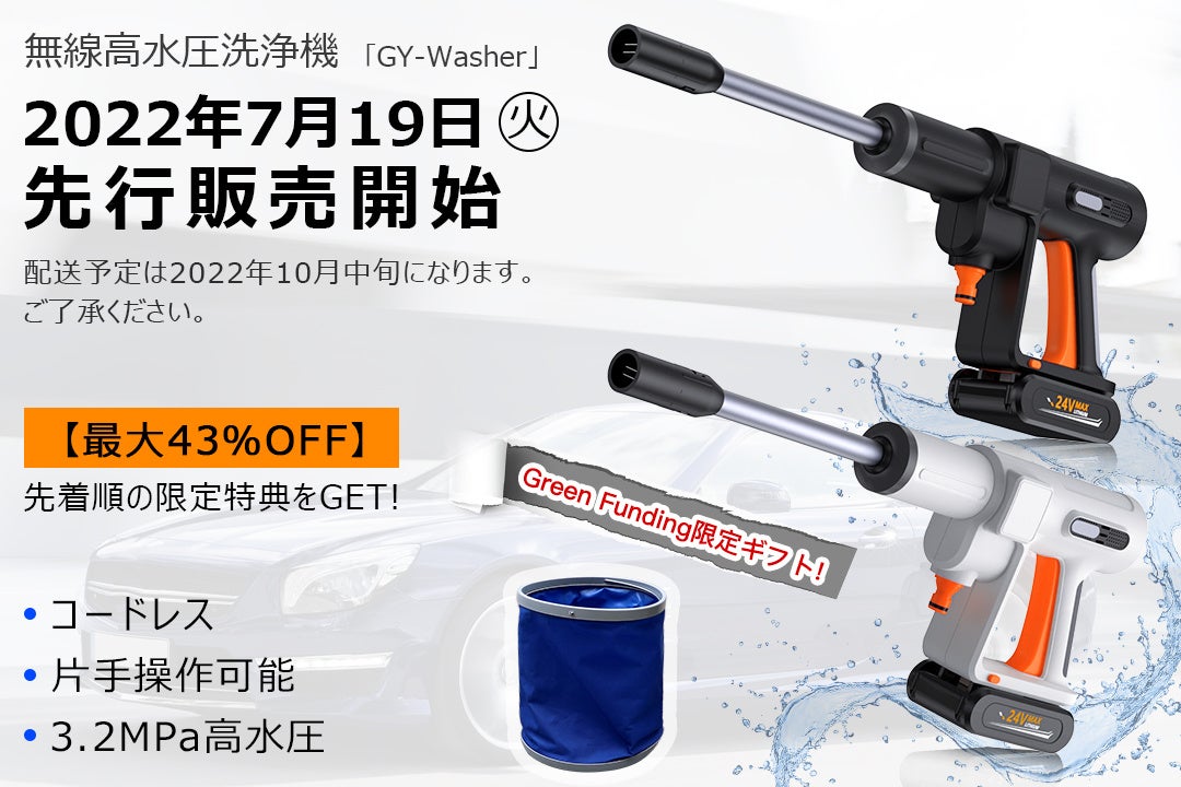 洗車やお掃除もこの一台で!【2022年最新型】人間工学設計の超軽量 ・片手操作可能 ・3.2MPa高水圧洗浄機「GY-Washer」。絶賛クラウドファンディングがGREEN FUNDINGにて登場!