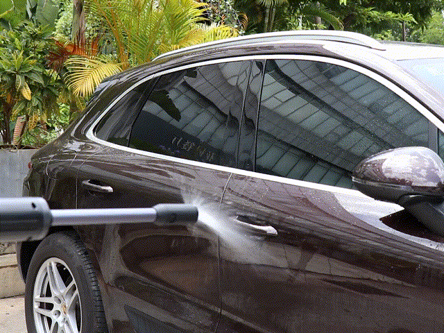水圧3.2MPa、頑固な汚れでも短時間で除去可能、強力に水を噴射し、ガラスや地面、車、野菜の洗浄などにこびりついた汚れを素早く除去し、瞬間にぴかぴか。