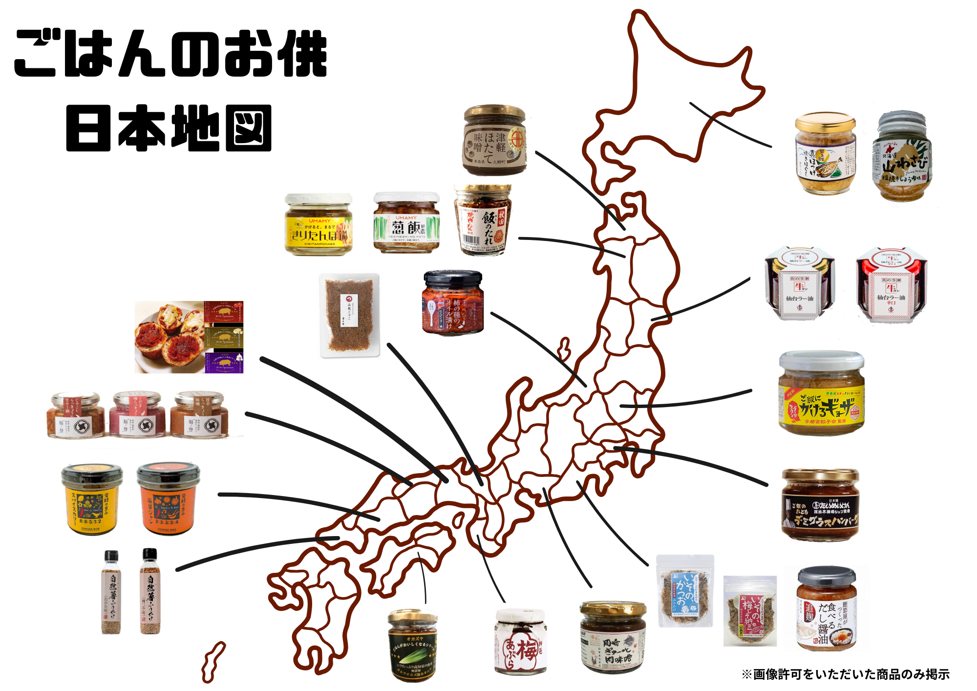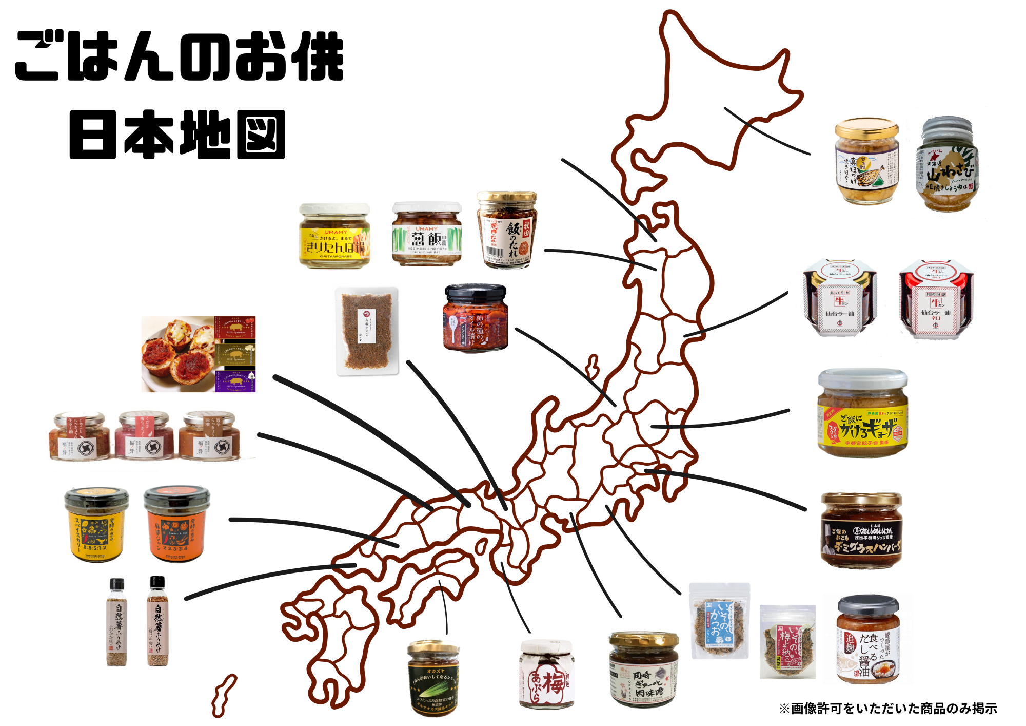 ご飯のお供コーナーでは、全国各地方から約70種類を集め、販売致します。