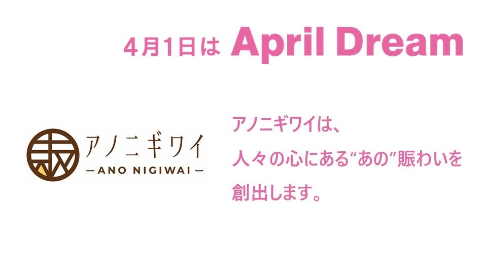 人々が想像する”あの”賑わいの実現を目指す株式会社アノニギワイは、4月1日を夢を発信する日にしようとするApril Dreamに賛同しています。このプレスリリースは「アノニギワイ」の夢です。