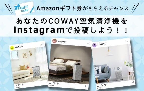 公式サイト1周年記念として、『#COWAYのある暮らし』に投稿を掲載いただいたお客様に、Amazonギフト券(500円分)をプレゼント中!