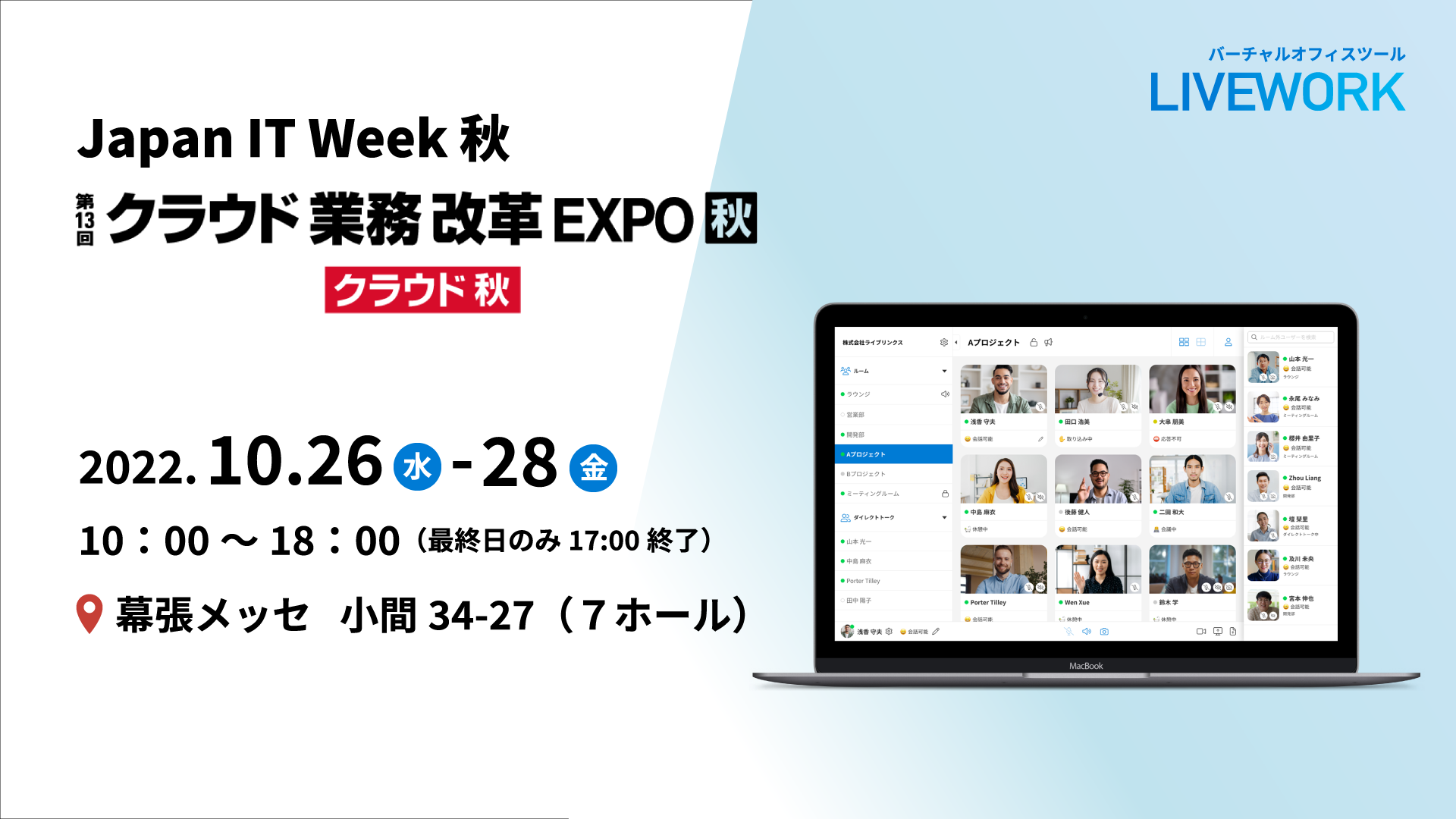 バーチャルオフィスツール「LIVEWORK(ライブワーク)」、Japan IT Week 秋「クラウド業務改革EXPO」に出展します