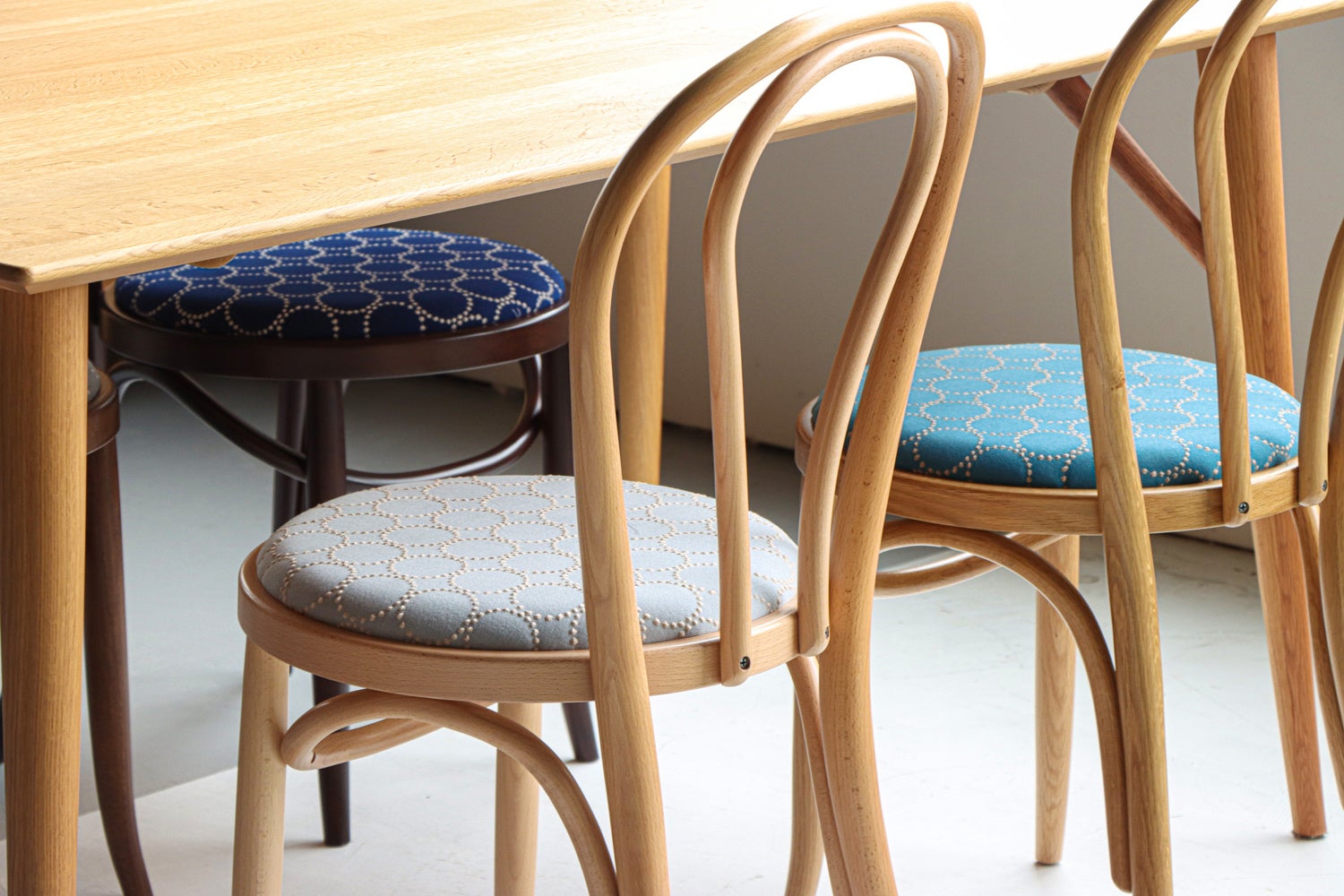 この度三島家具では、日本の老舗メーカーが作った名作椅子にミナ ペルホネンの生地を張った特別限定モデルの受注会と、タンバリンの生地で作ったサコッシュを数量限定で販売します。こちらはどちらも三島家具オンラインショップ2周年企画の目玉企画!椅子は伝統ある国内メーカー3社(飛騨産業、秋田木工、日進木工)の人気モデルを採用し、三島家具のコンセプト「愛着のある物を永くつかっていただく」に合う物を揃えました。サコッシュは女性が使うには最適なサイズになっていて、シンプルでおしゃれな仕様になっています。肩掛けの紐にはレザーを採用するなどディテールにも拘ったアイテムです。