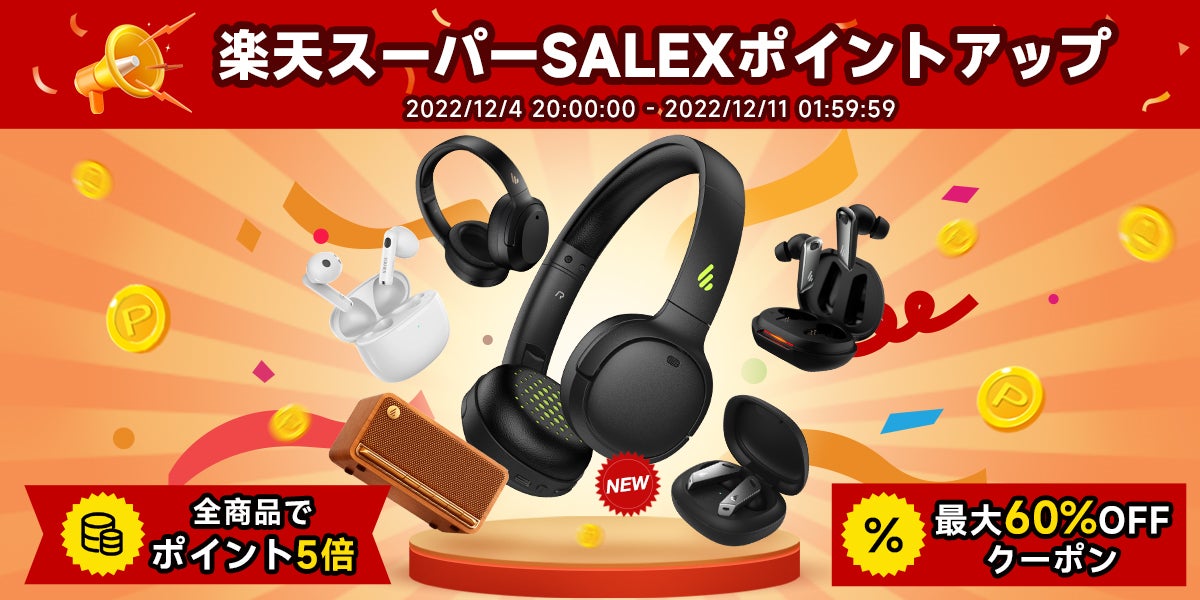 楽天今年最後のスーパーセールに参加!EDIFIER日本楽天公式店舗計12製品が豪華特典付き!最大60%OFF!